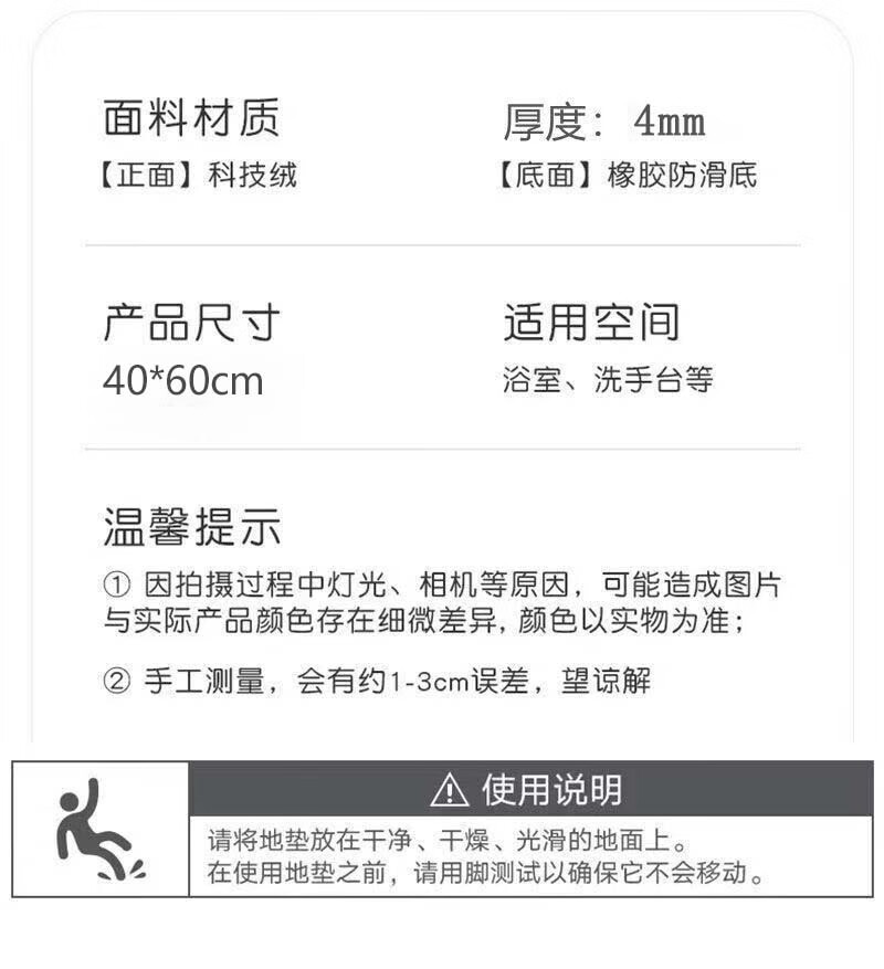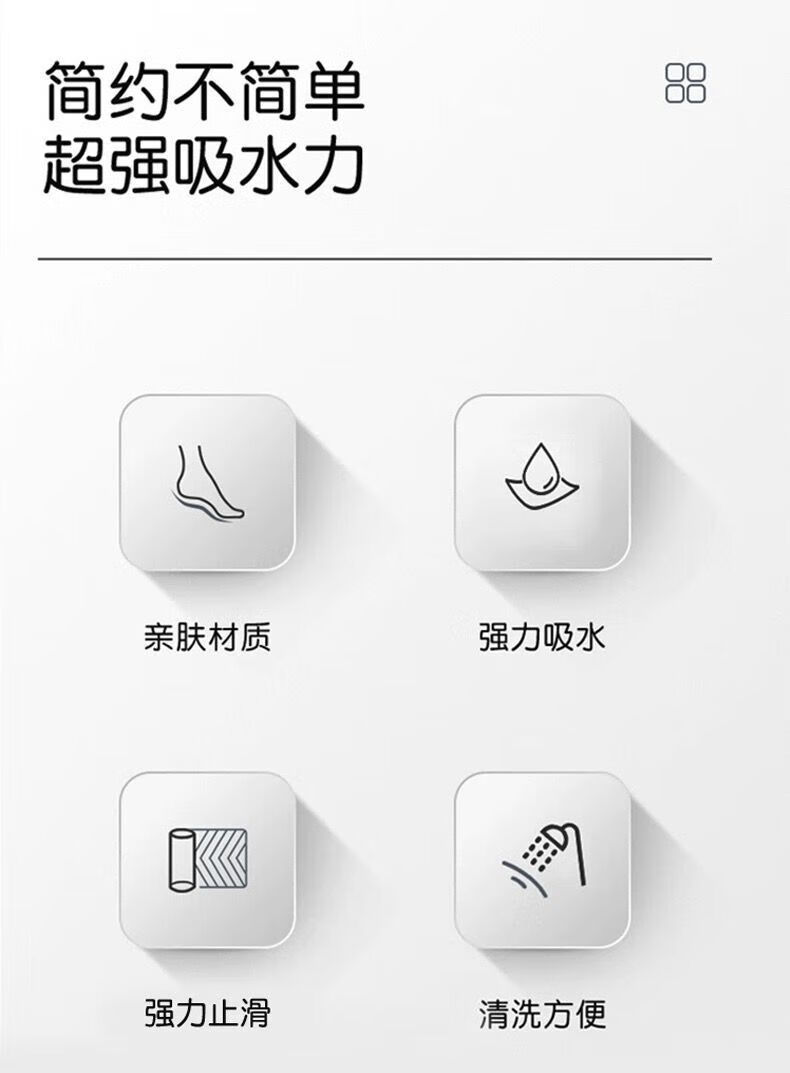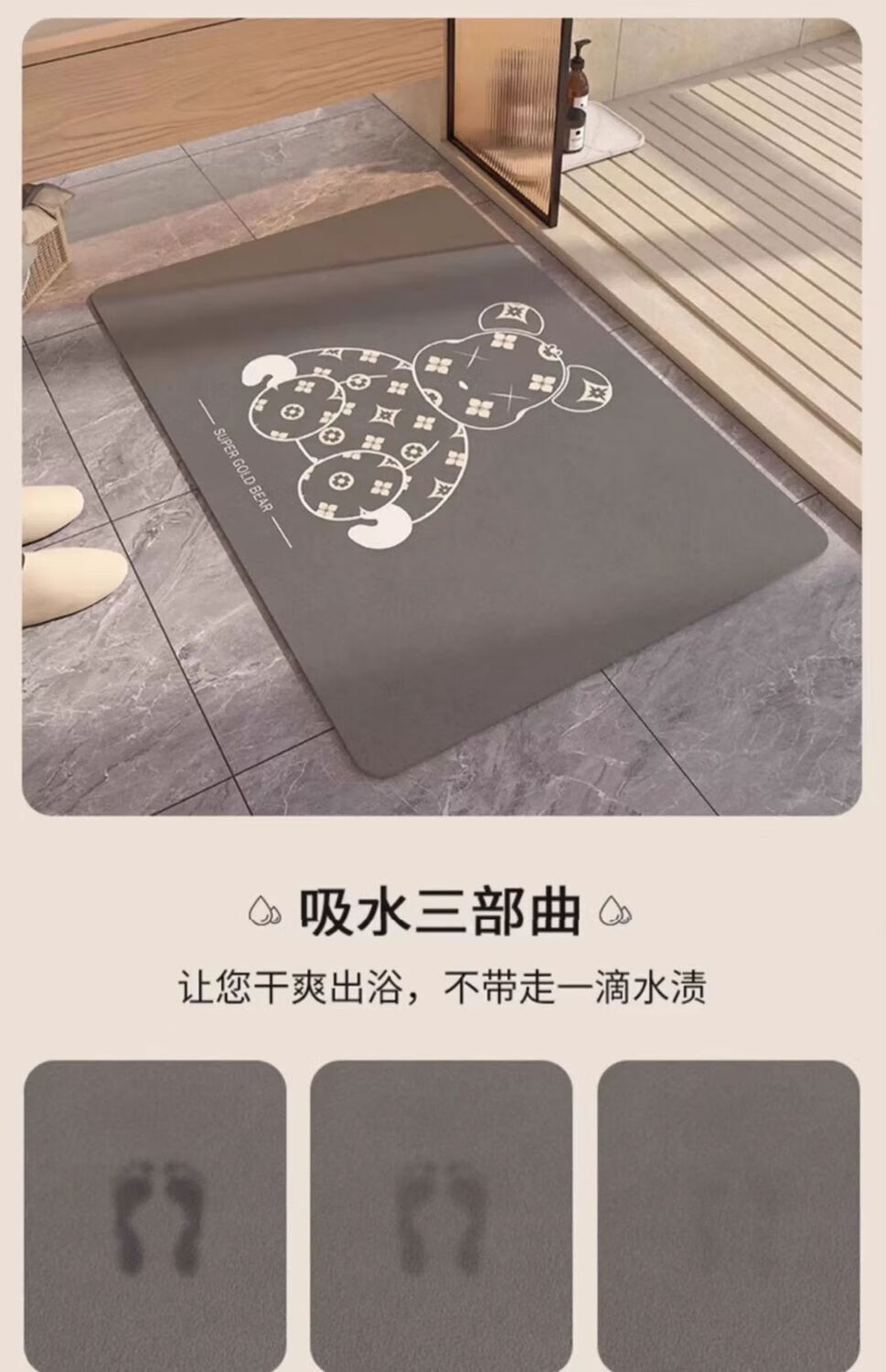 艾杰普浴室地垫卫生间防滑垫速干吸水地垫门口脚垫卫浴家用垫子40x60cm