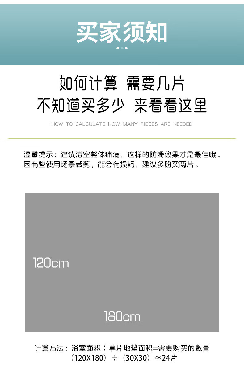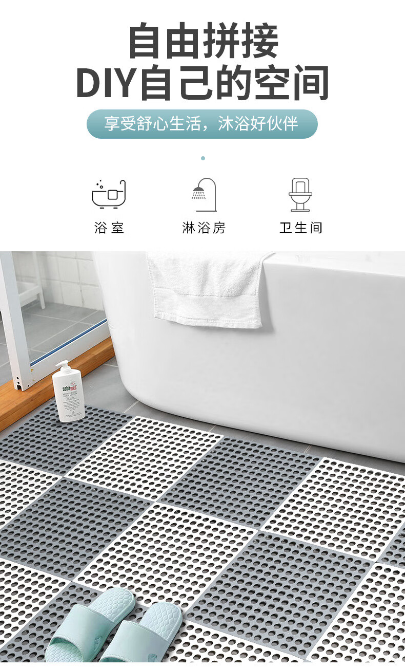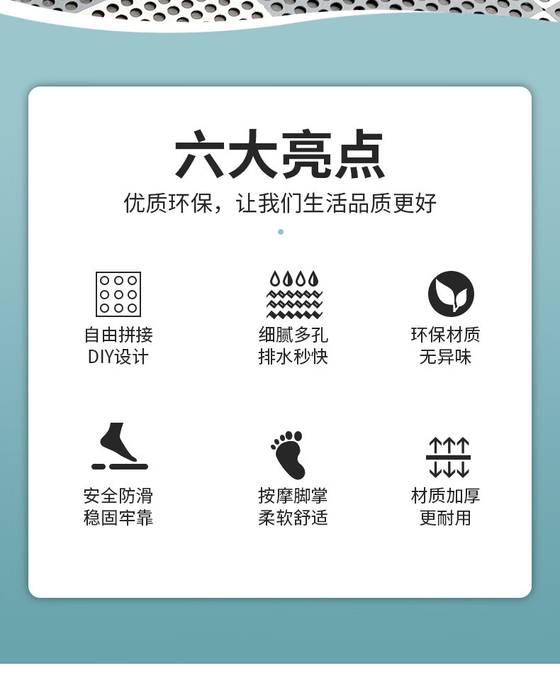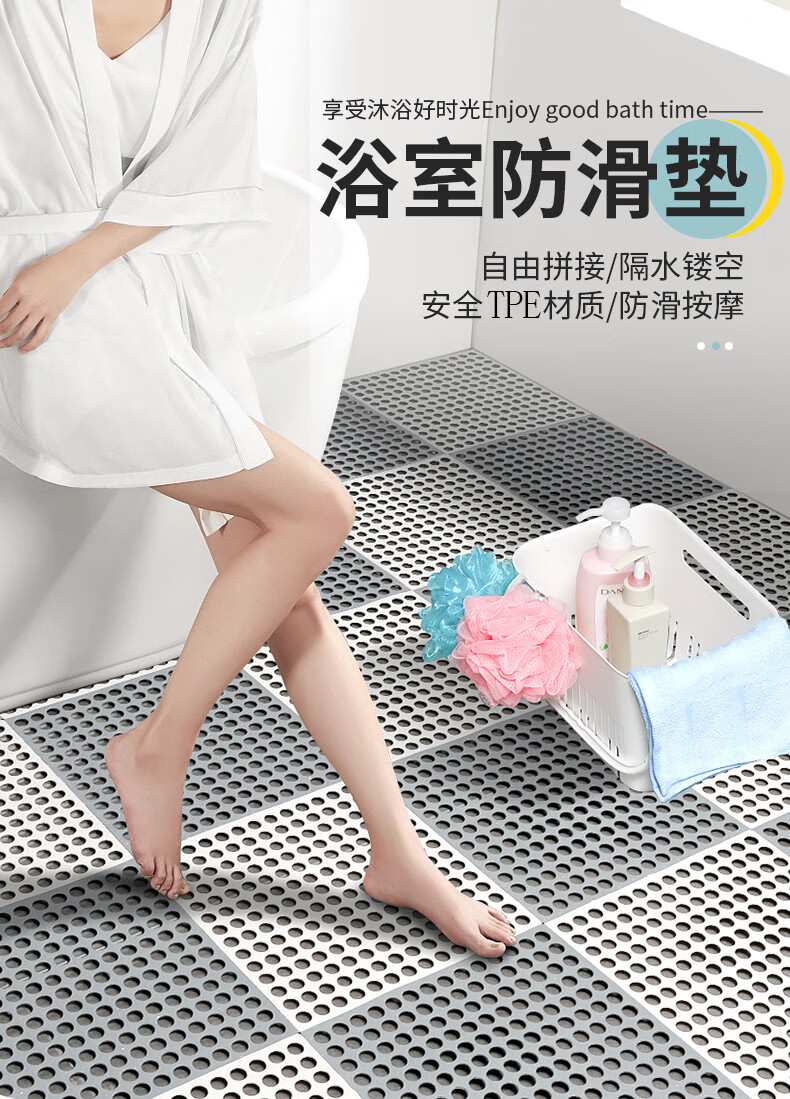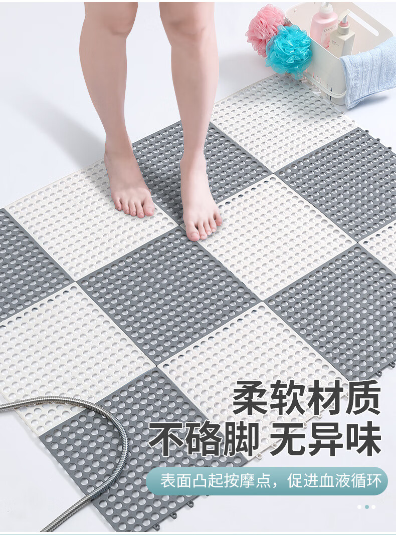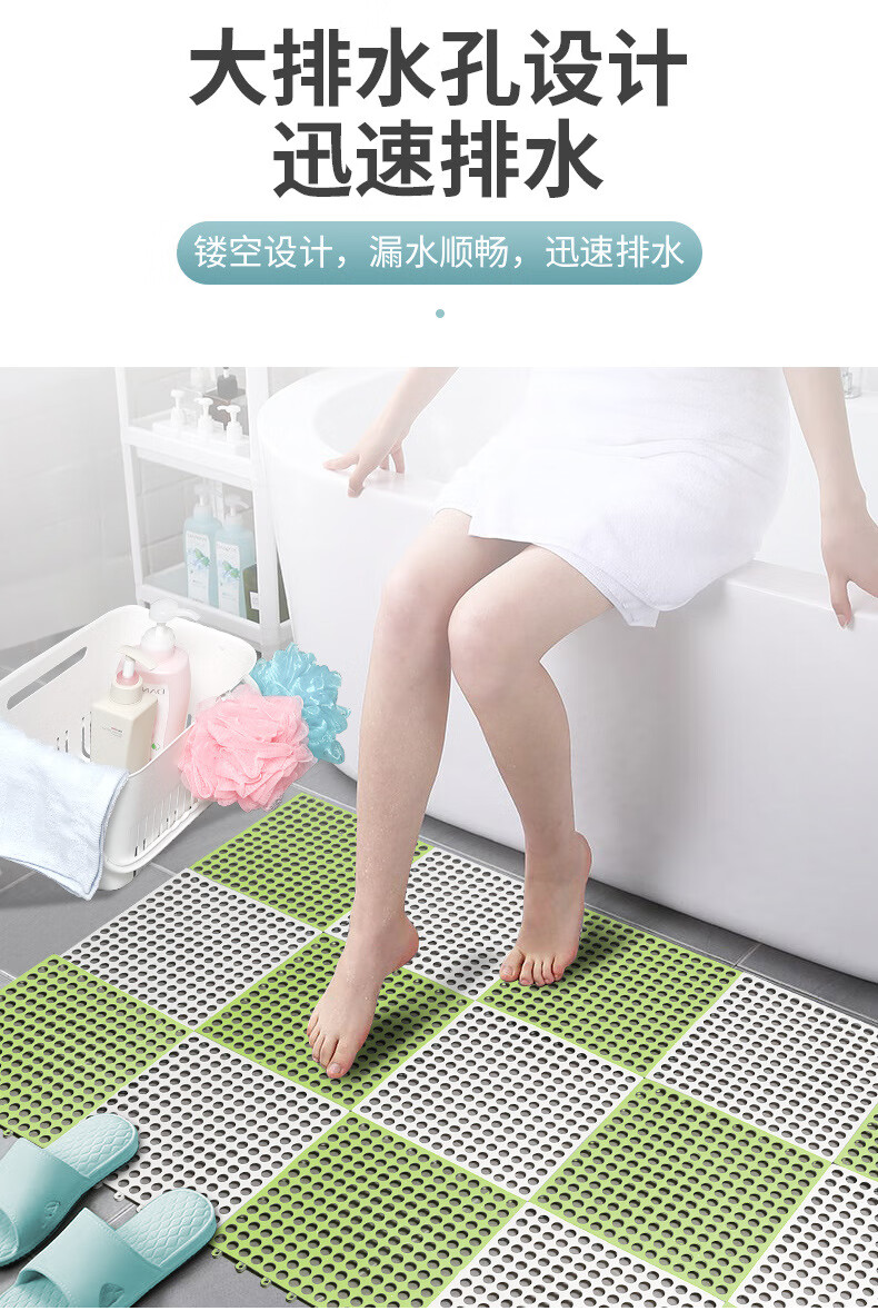 艾杰普浴室防滑垫卫生间淋浴房脚垫全铺镂空漏空防滑拼接地垫6片装