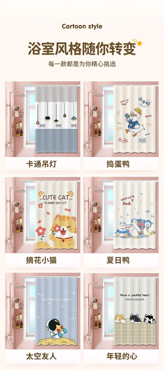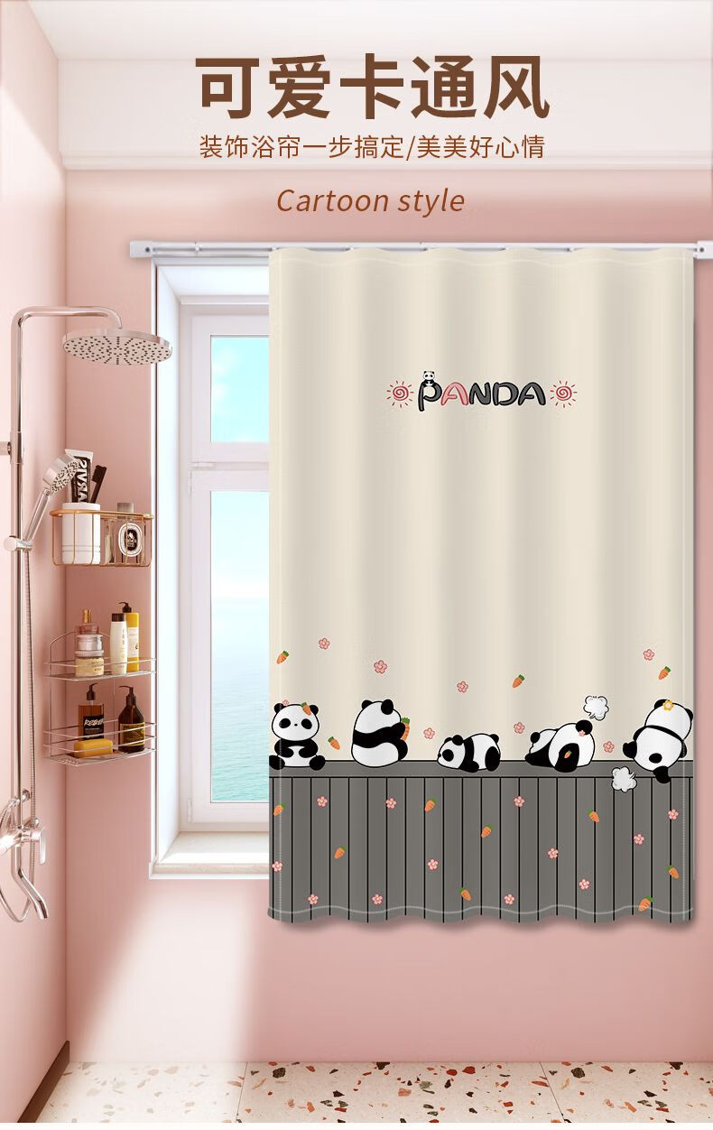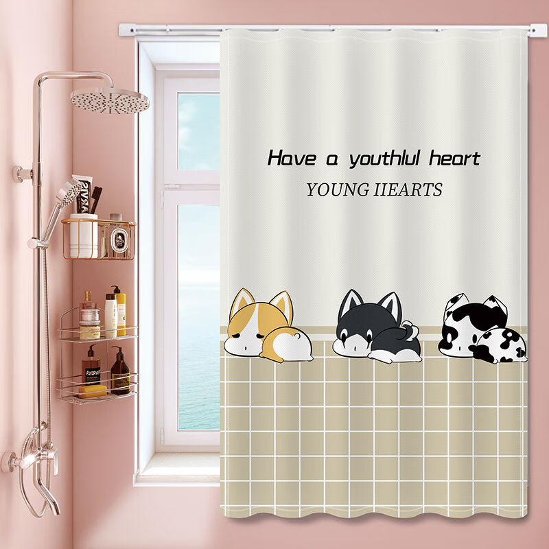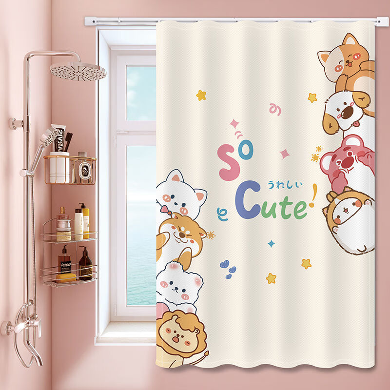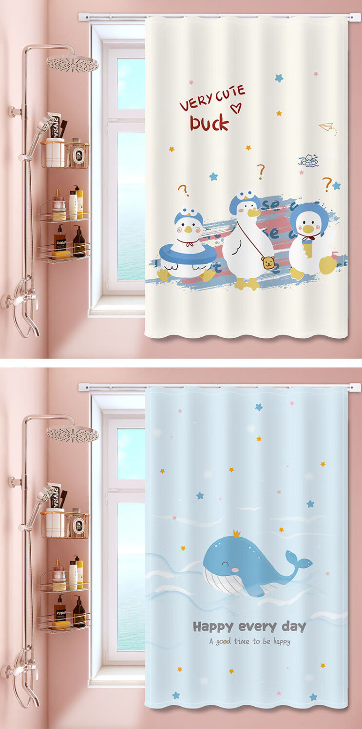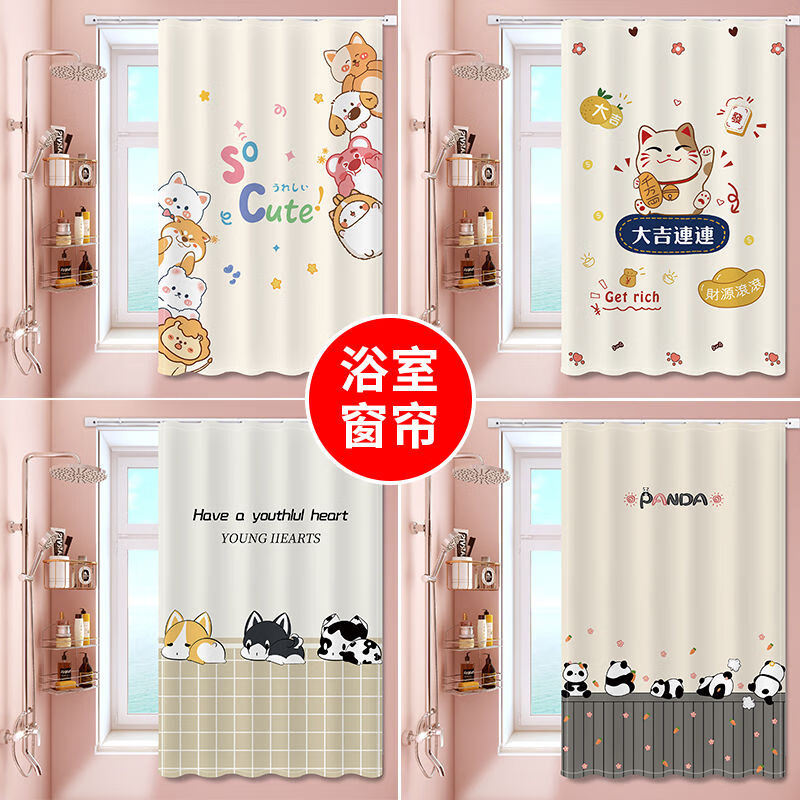 艾维乐浴室卫生间窗帘免打孔安装厕所小窗户防窥防水防走光专用遮挡帘子 好运熊熊【滑轨款】 帘宽50*100cm高