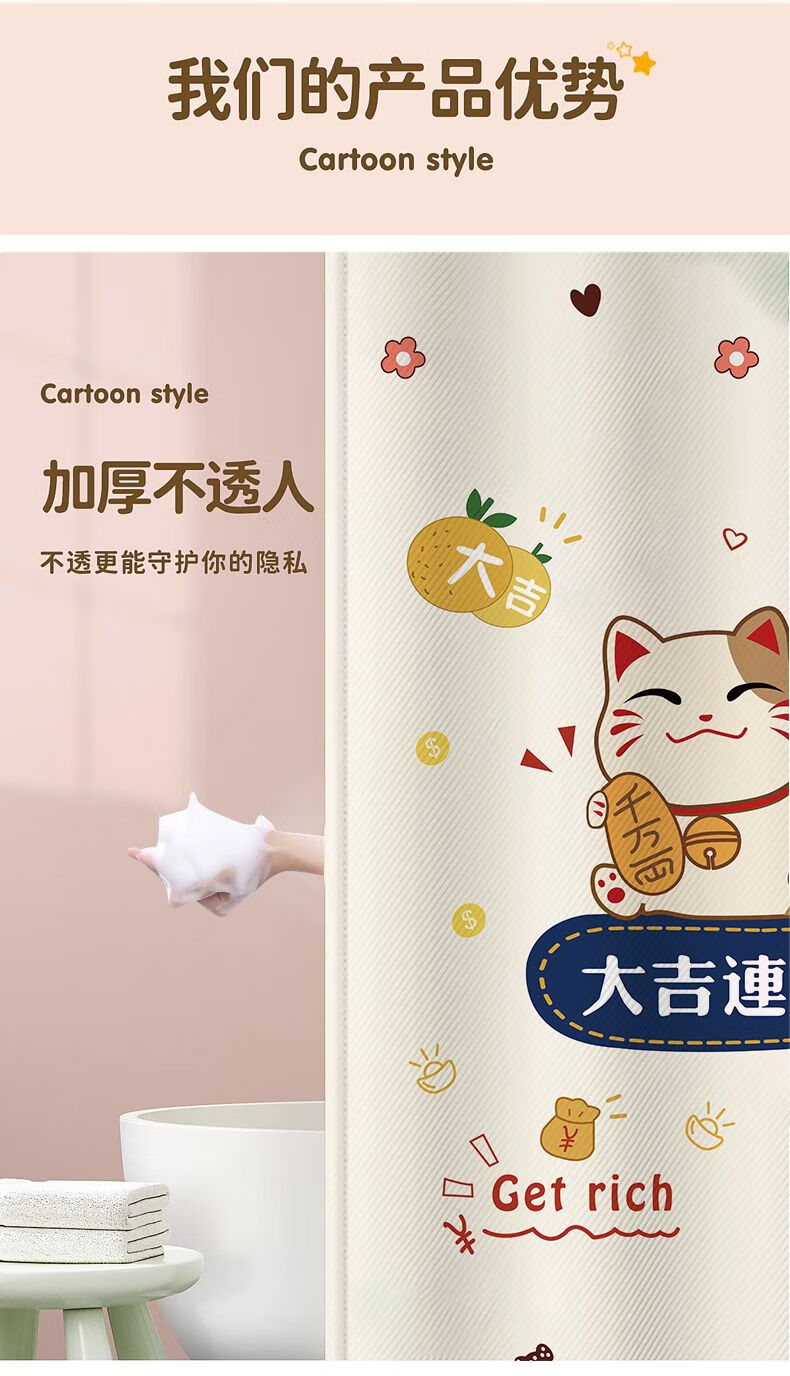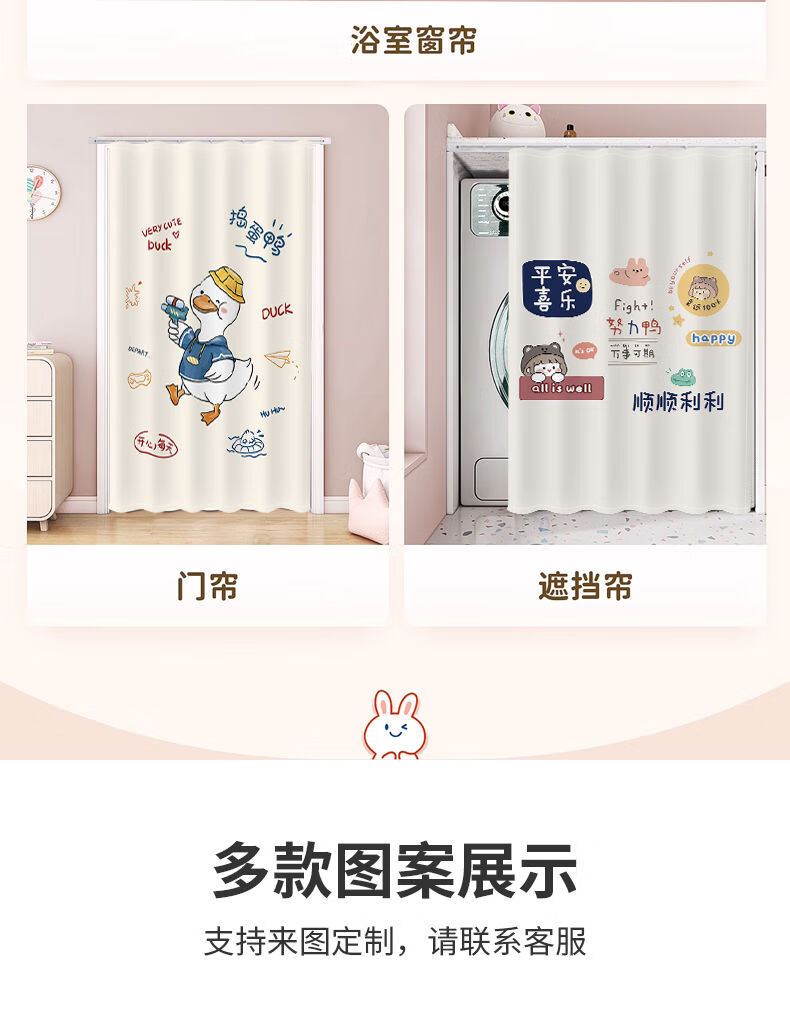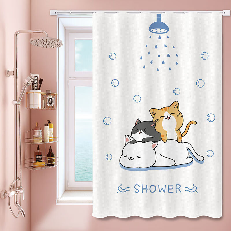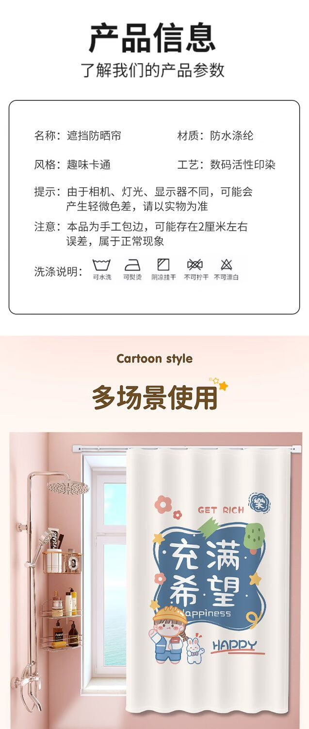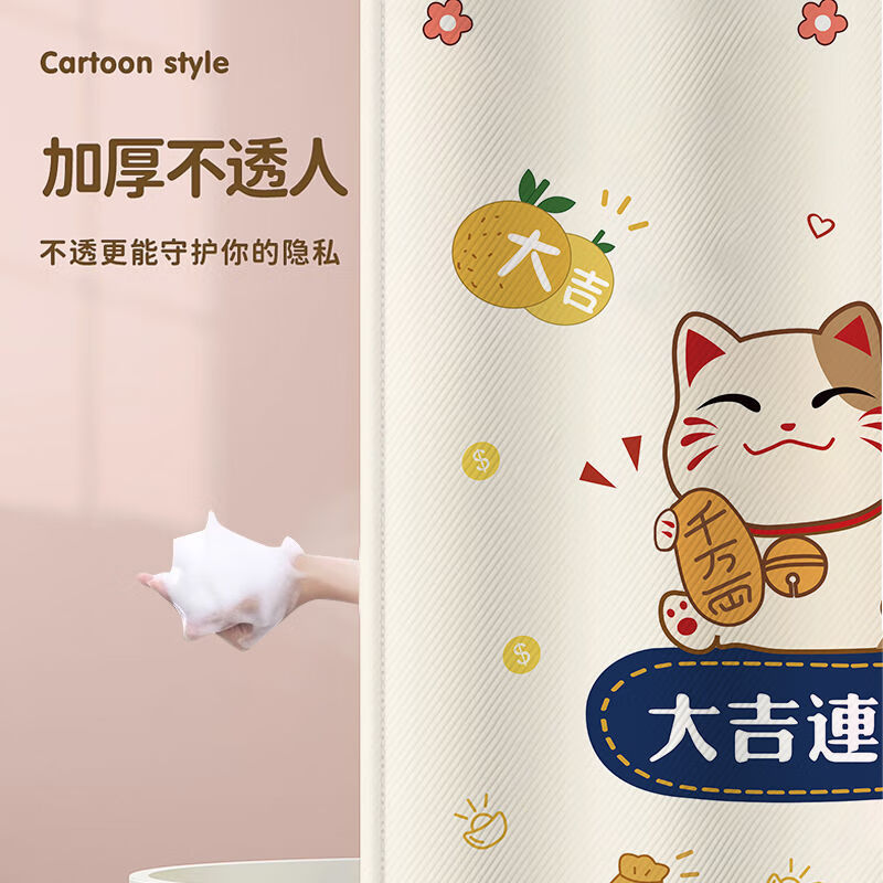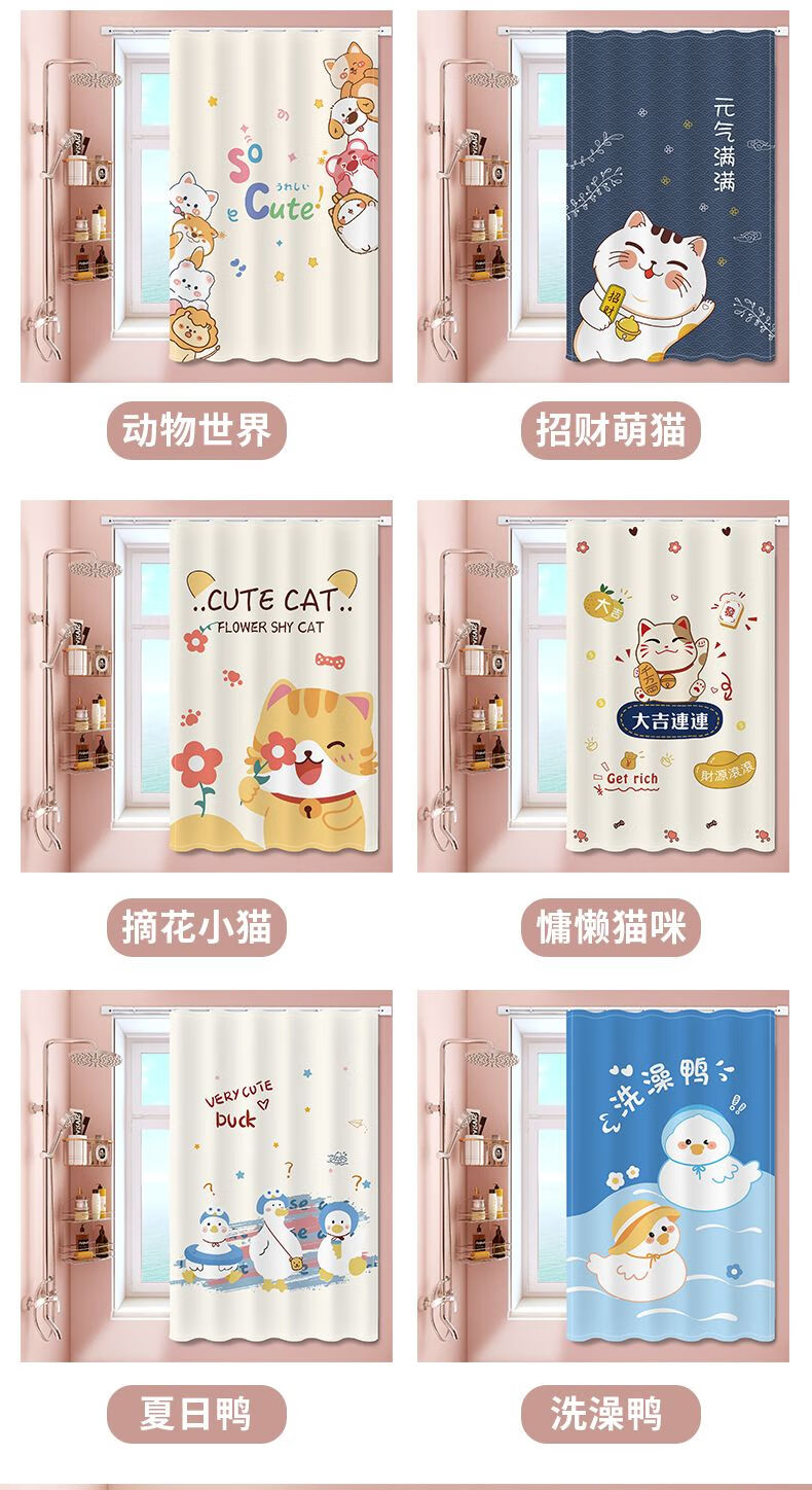 艾维乐浴室卫生间窗帘免打孔安装厕所小窗户防窥防水防走光专用遮挡帘子 好运熊熊【滑轨款】 帘宽50*100cm高