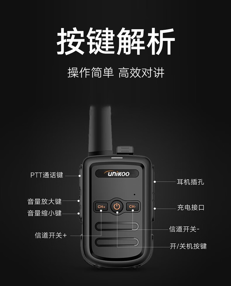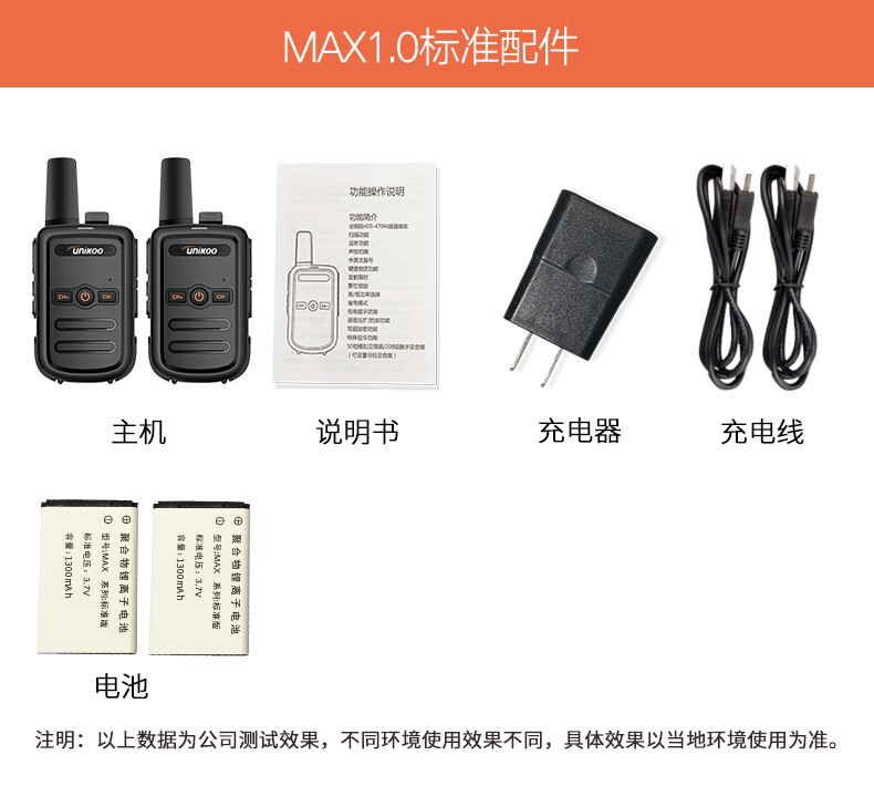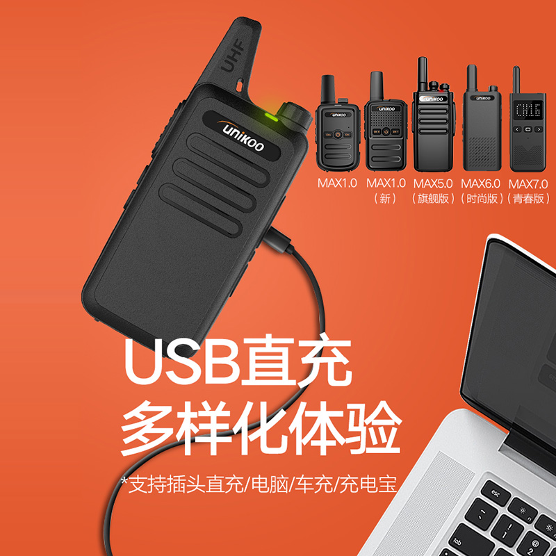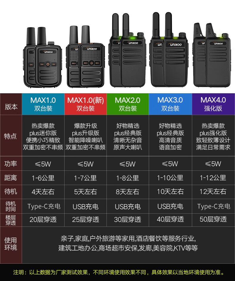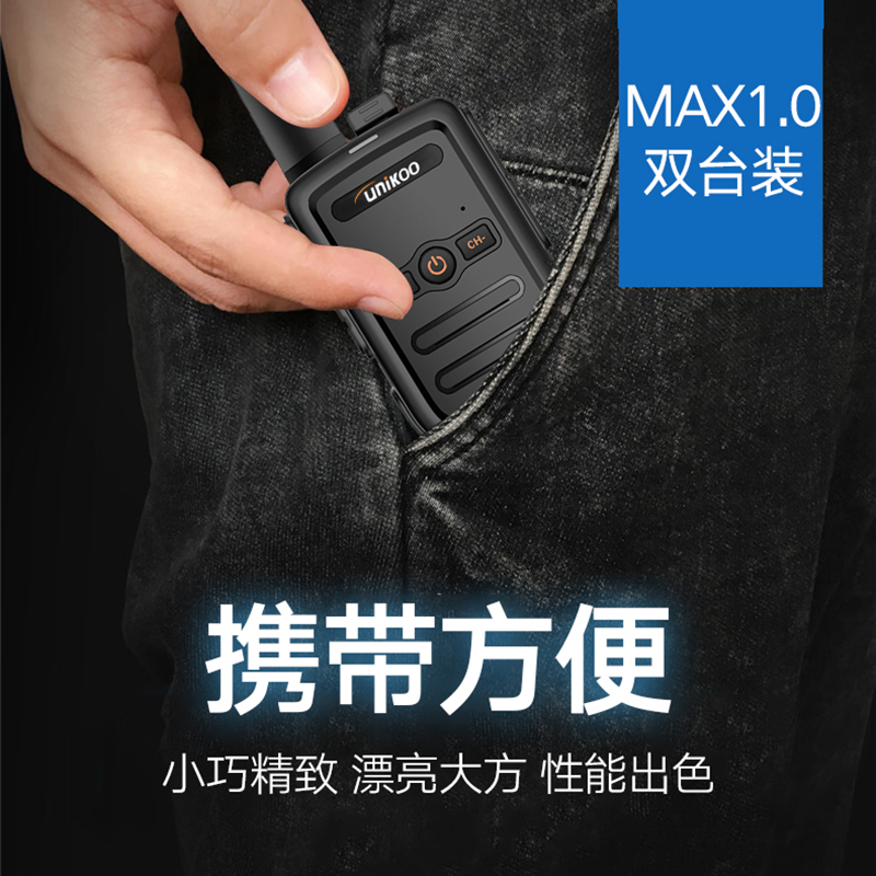 UNIKOO【双台装】对讲机 远距离 工地办公酒店安保餐饮户外大功率对讲机儿童迷你民用手台 MAX1.0经济版