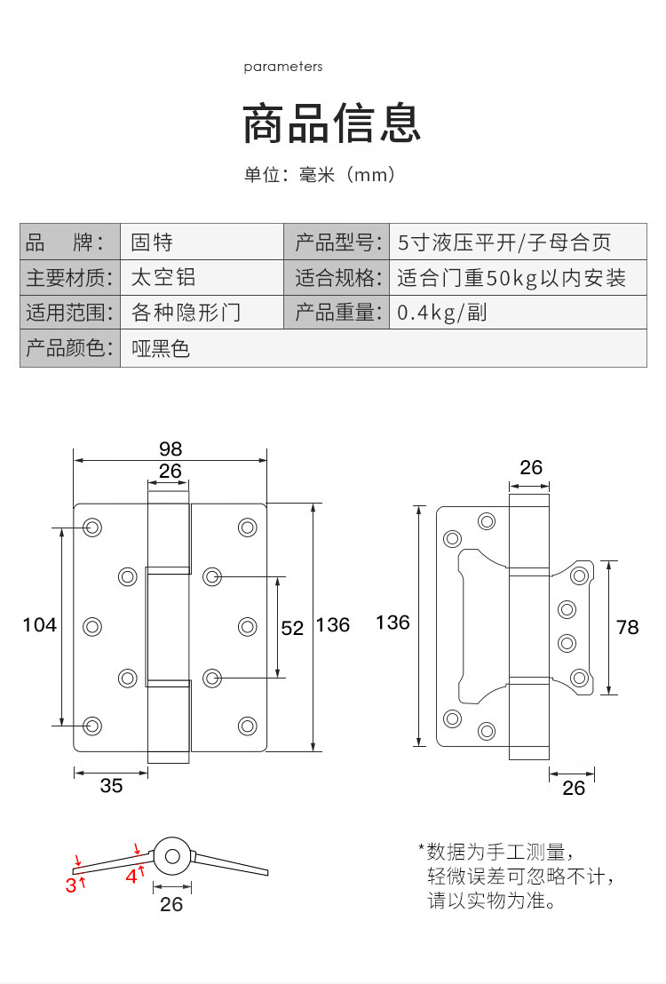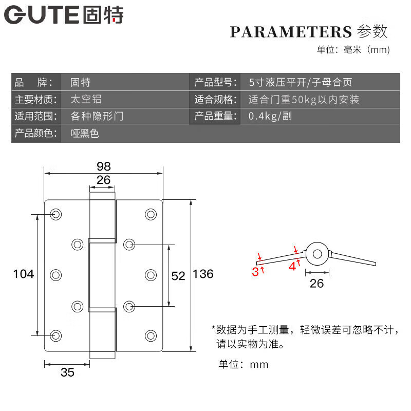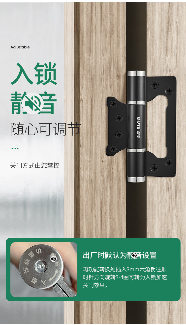 固特(GUTE)隐形门合页液压合页闭门器缓冲弹簧自动关门定位阻尼铰链5寸单片
