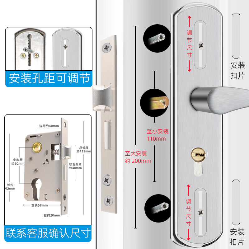 初工门锁卧室门锁室内门锁可调节通用门锁免改孔门锁 双孔可调孔距