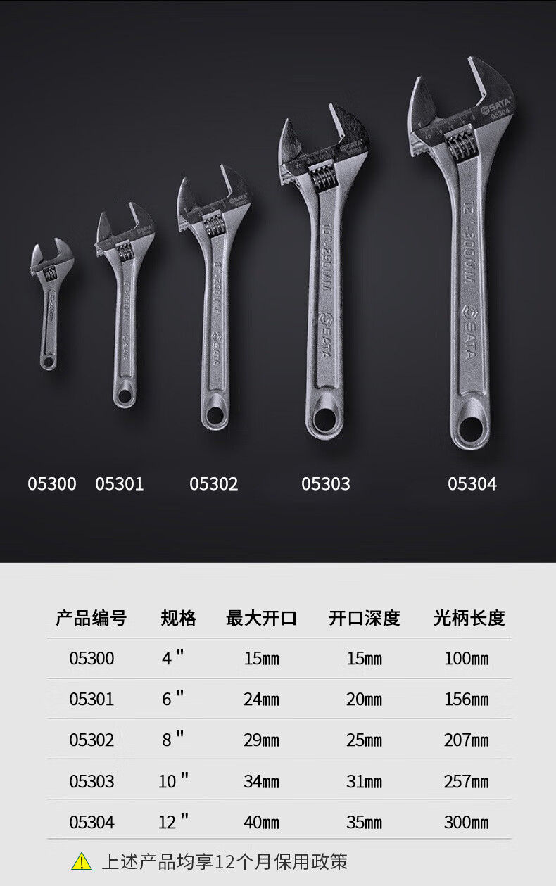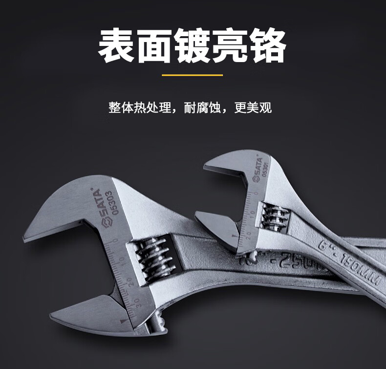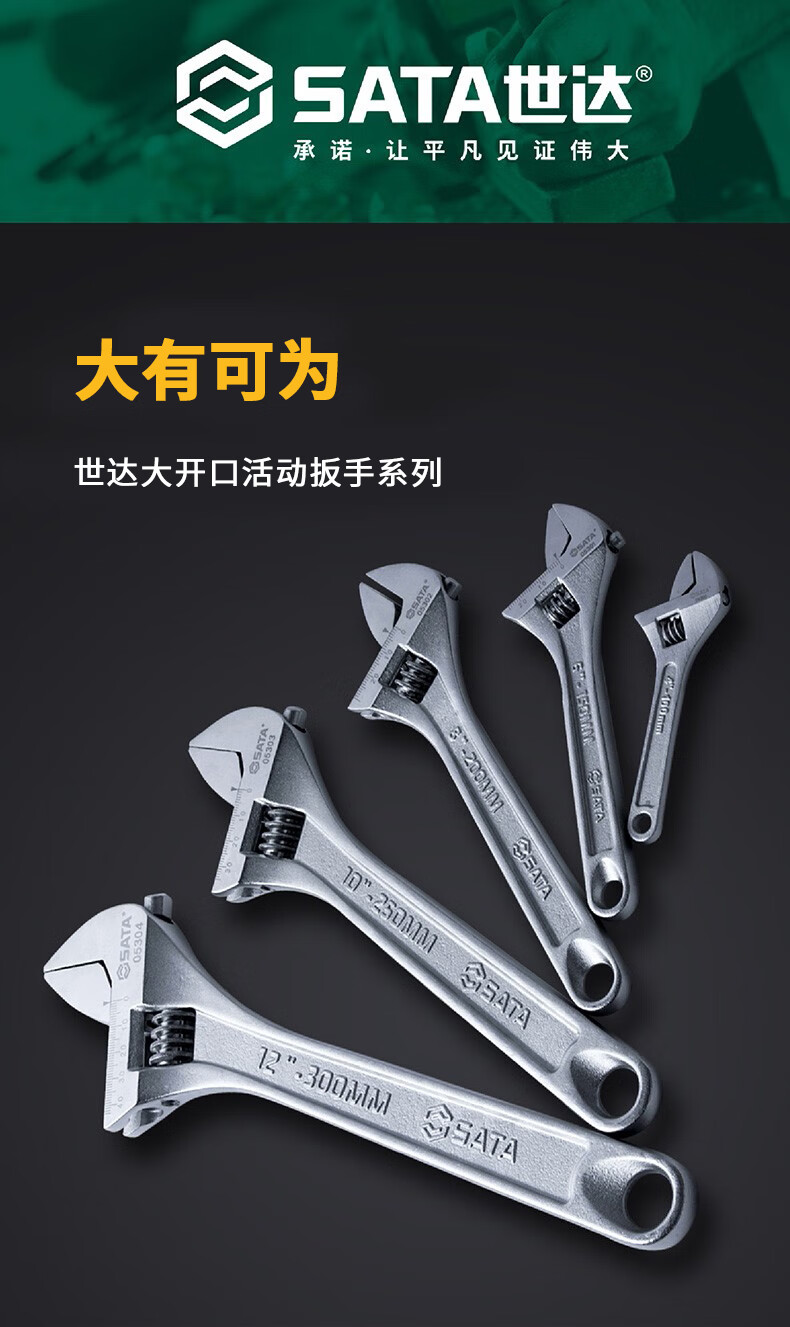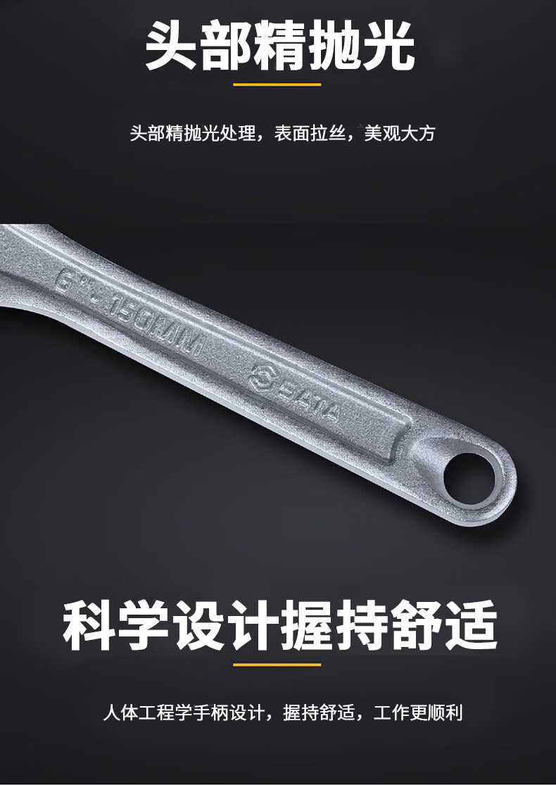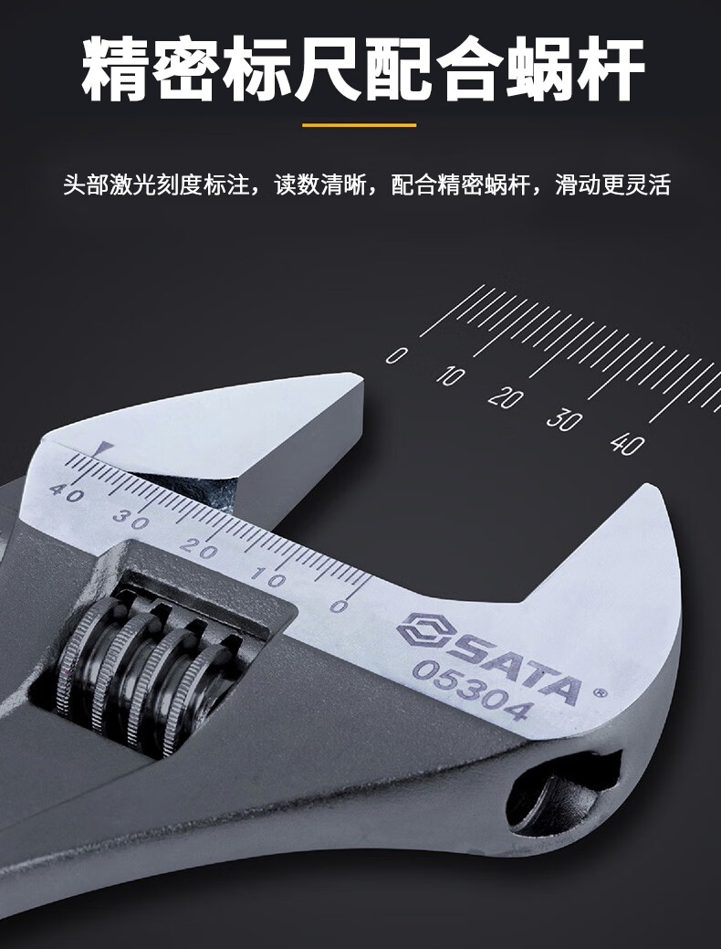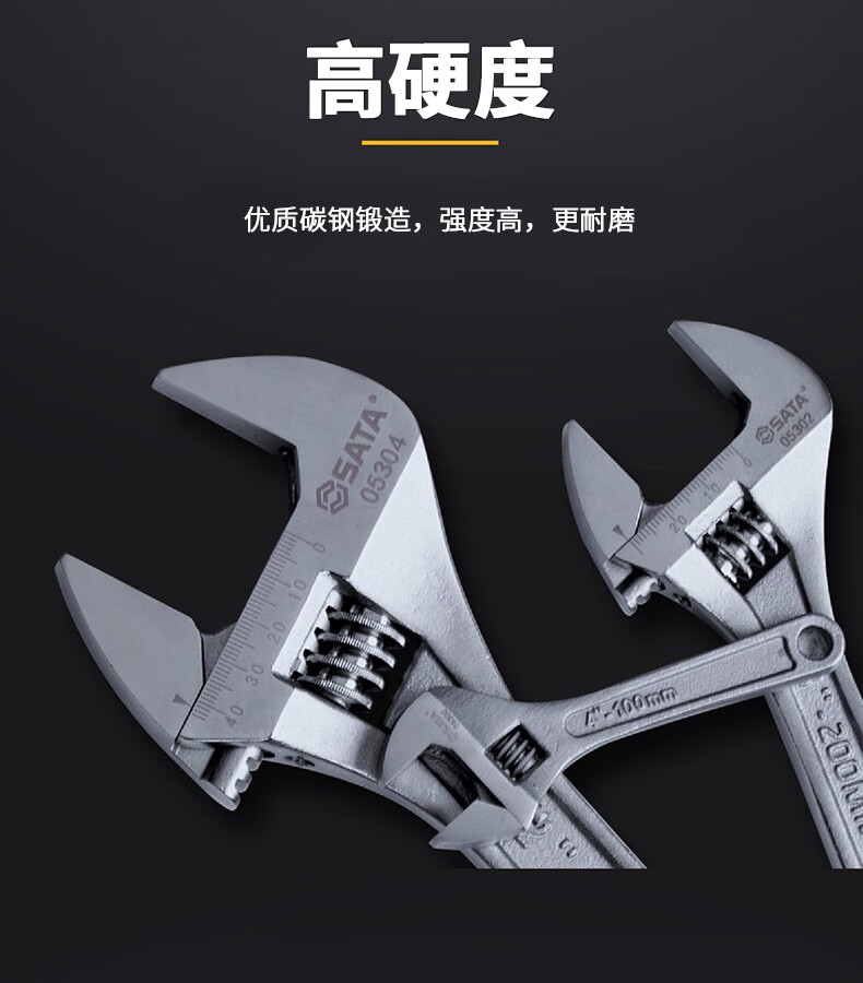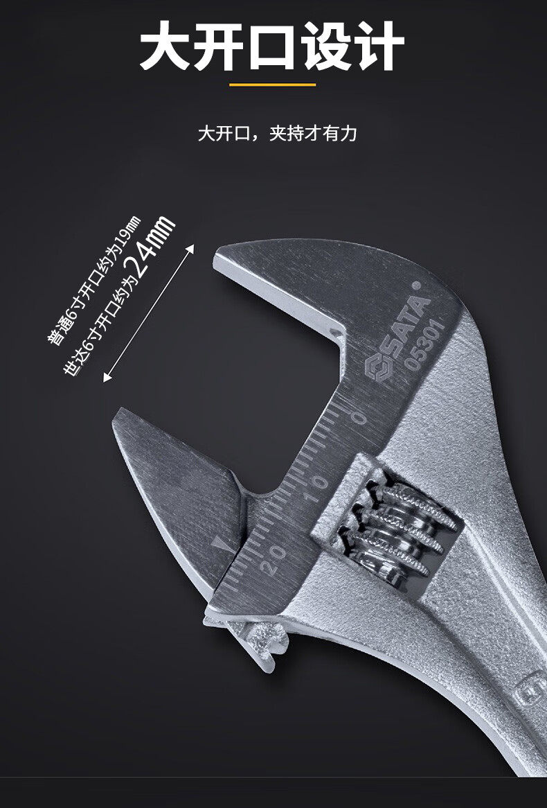 世达(SATA)光柄活动扳手活扳手大活头活嘴活口扳手大开口活动扳手8" 05302