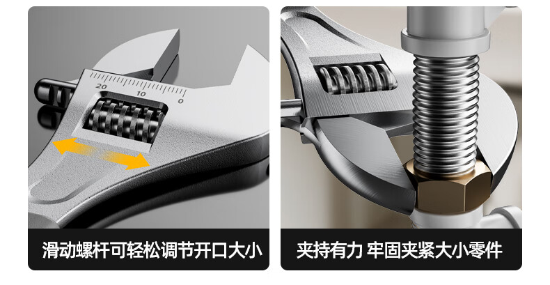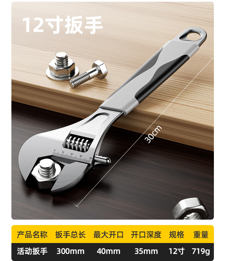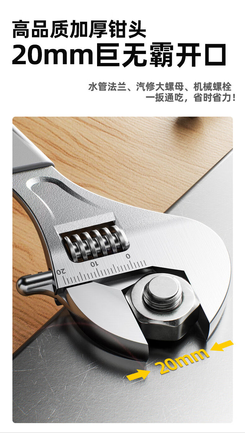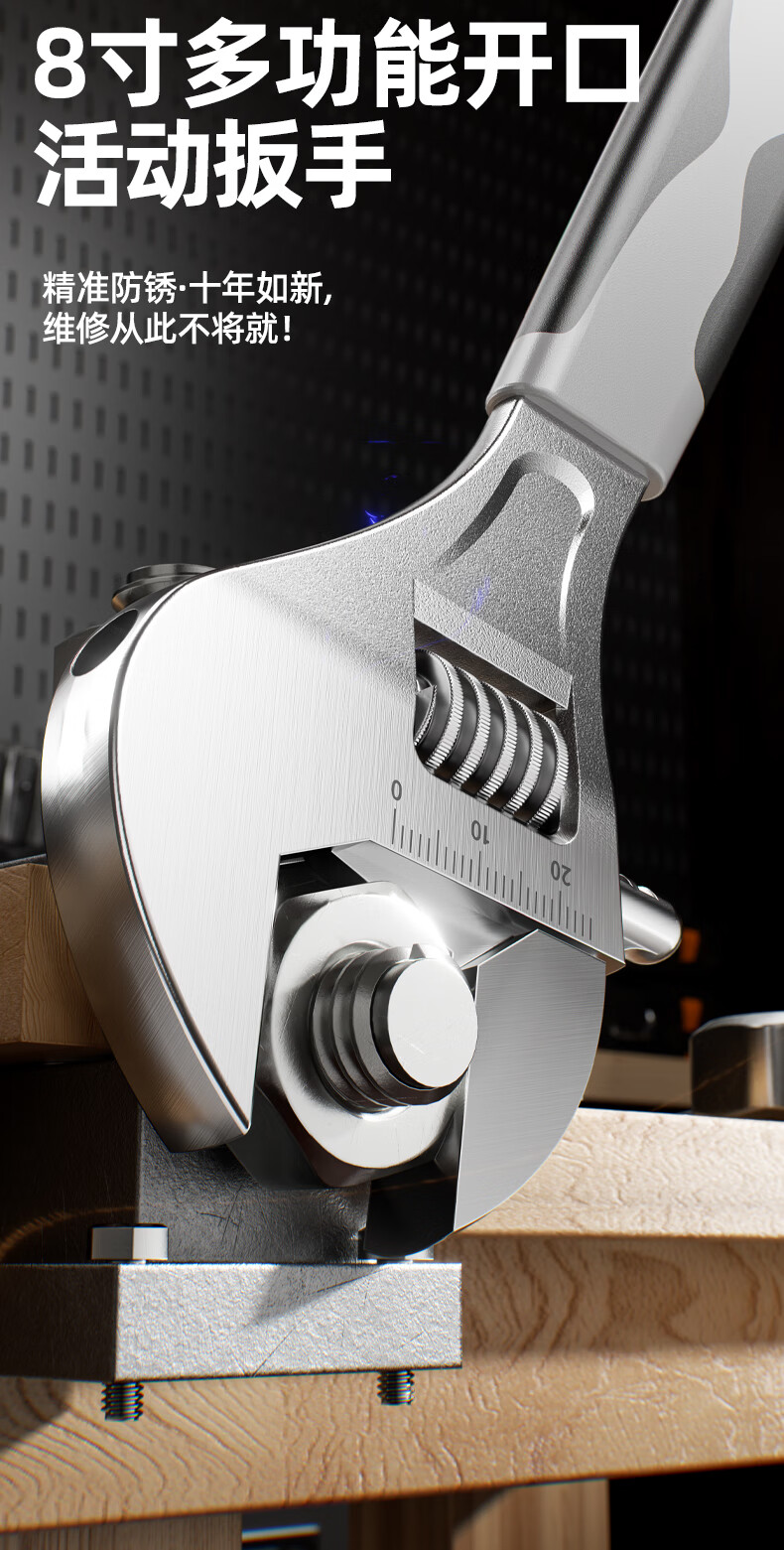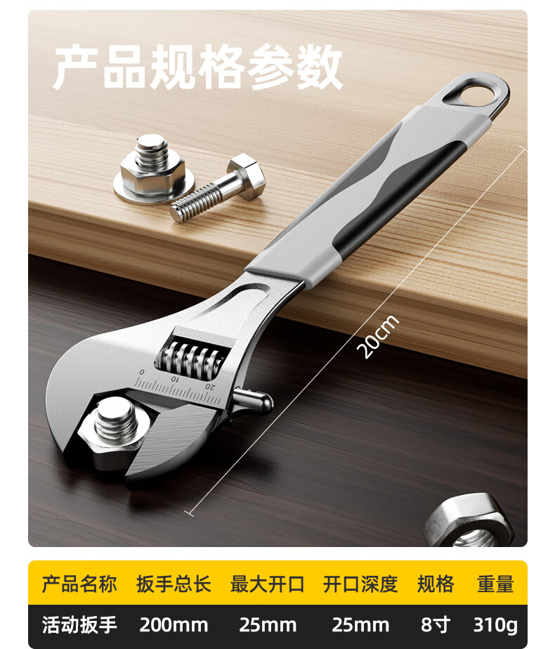 欧莱德(OULAIDE)8寸活动扳手套装工具万能活口扳手大开口多功能卫浴活络扳子光柄