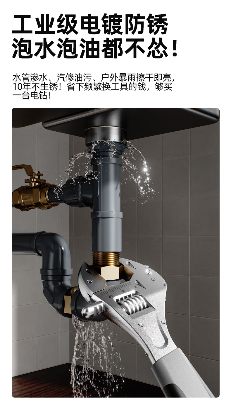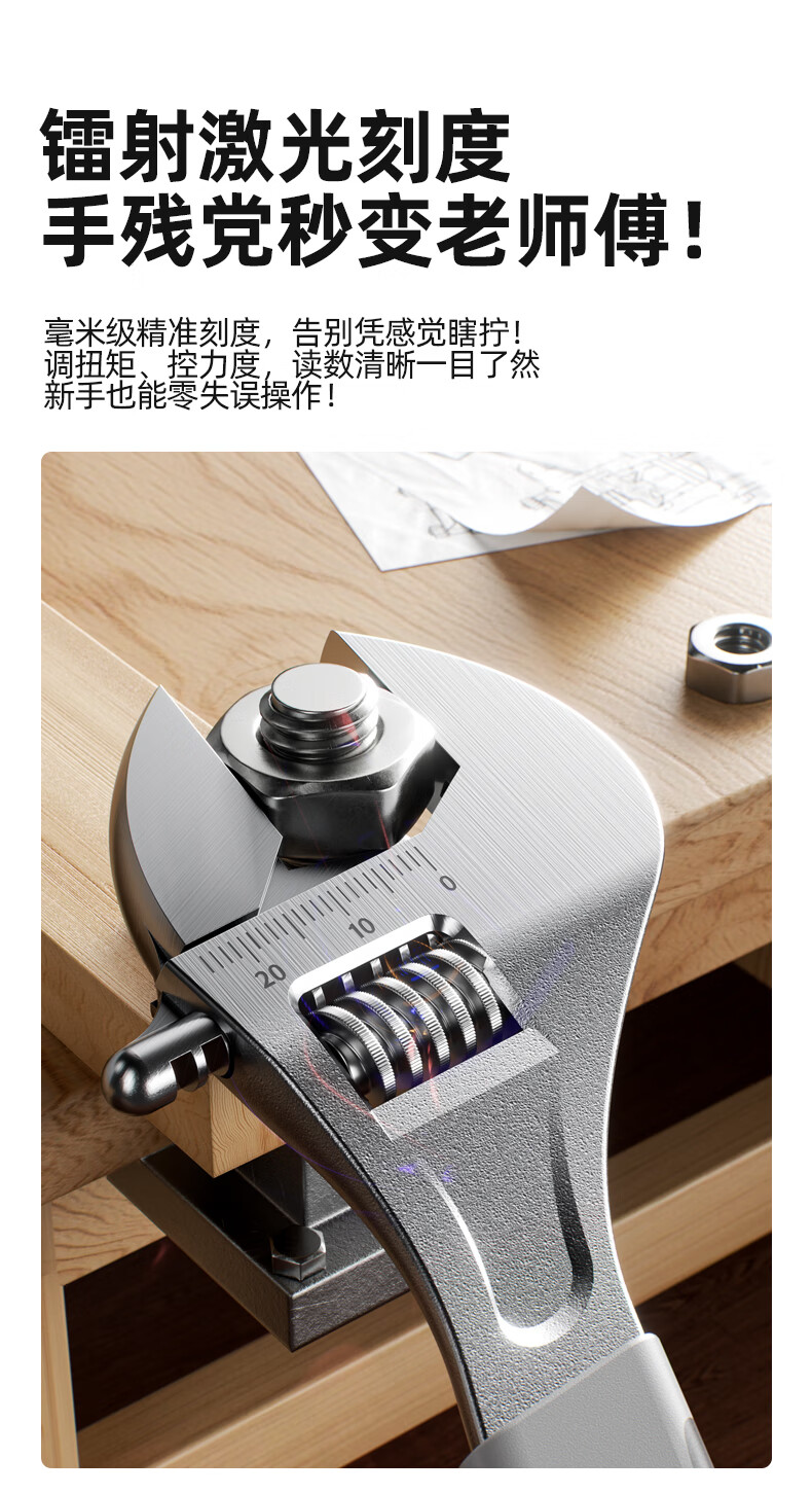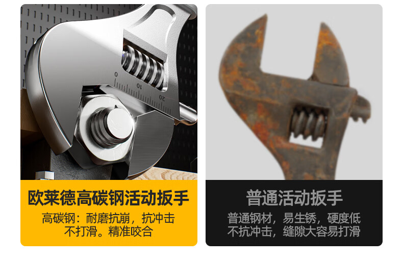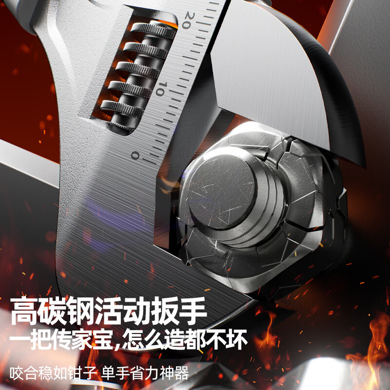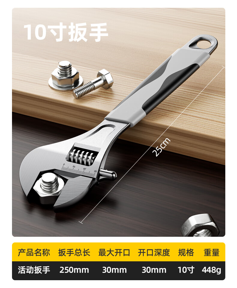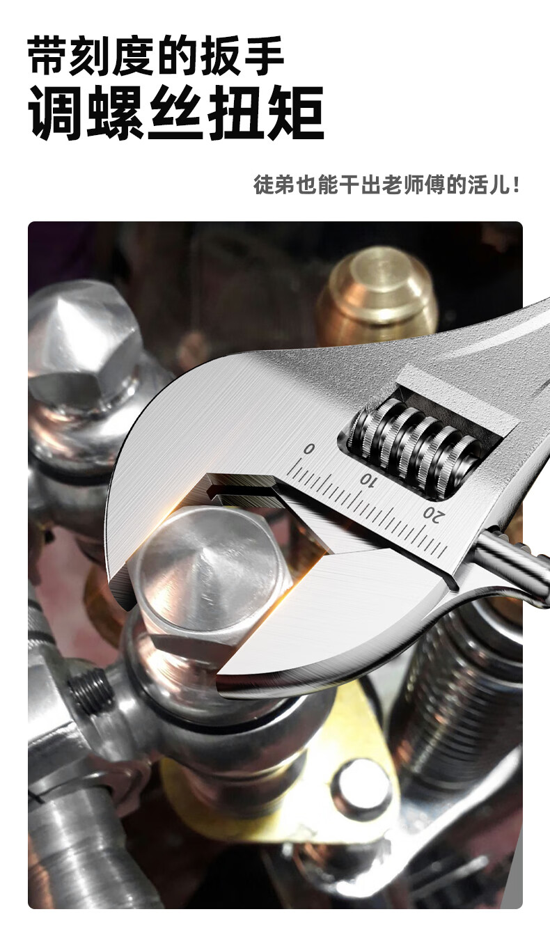 欧莱德(OULAIDE)8寸活动扳手套装工具万能活口扳手大开口多功能卫浴活络扳子光柄