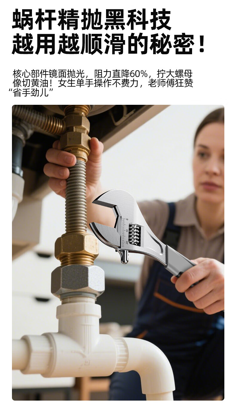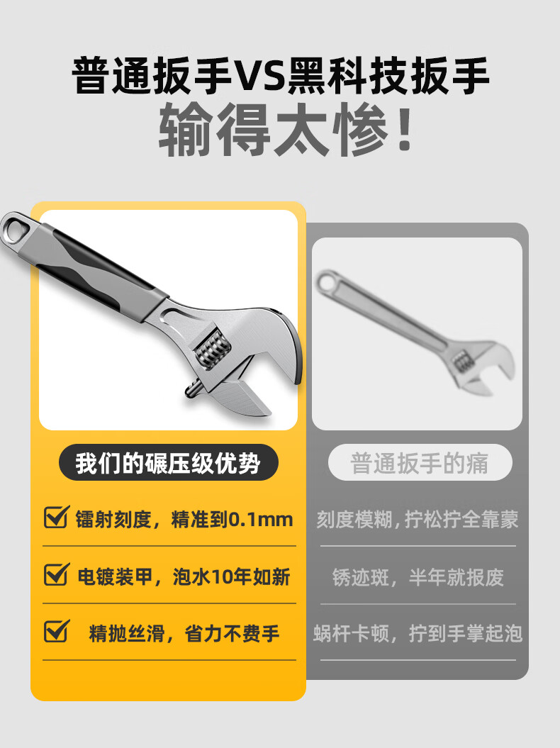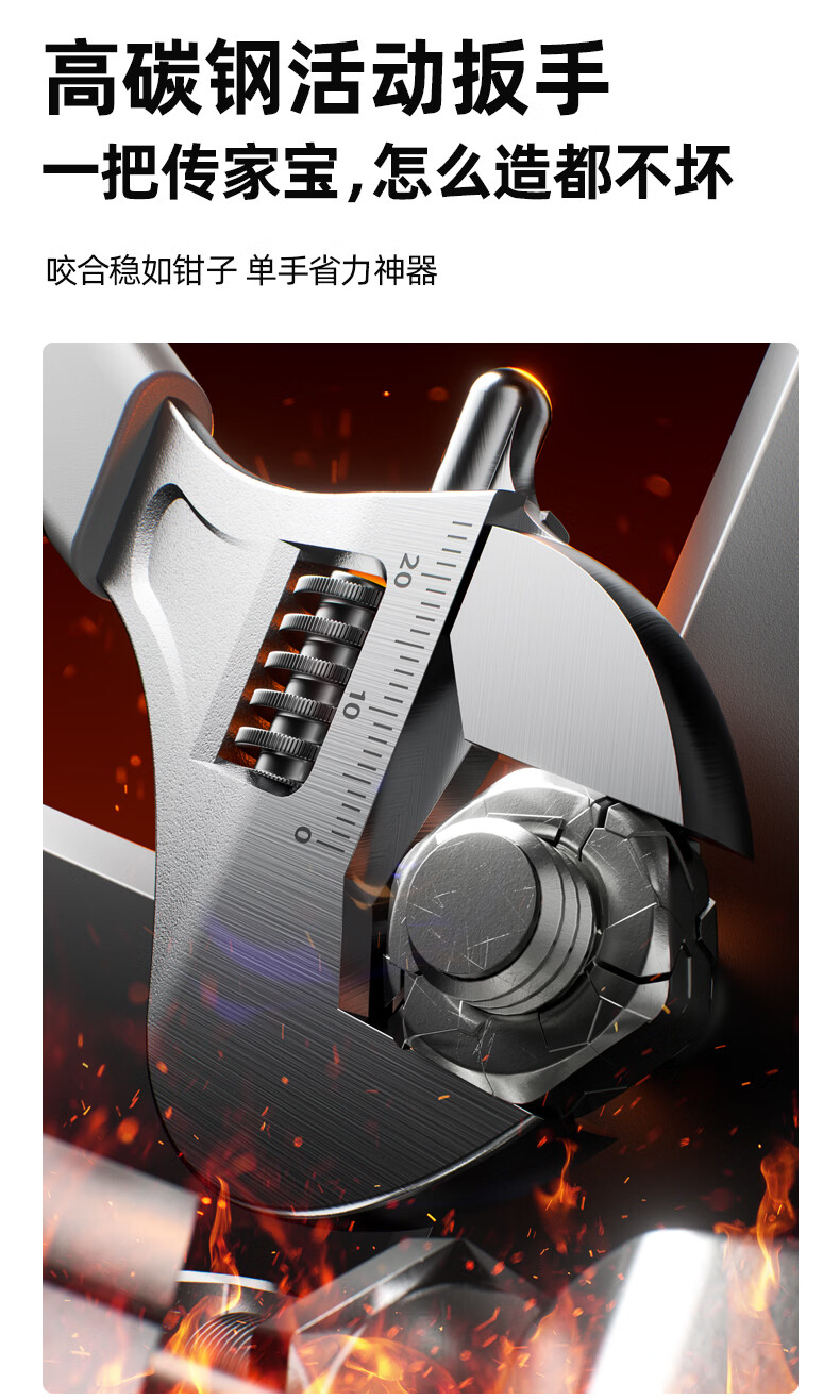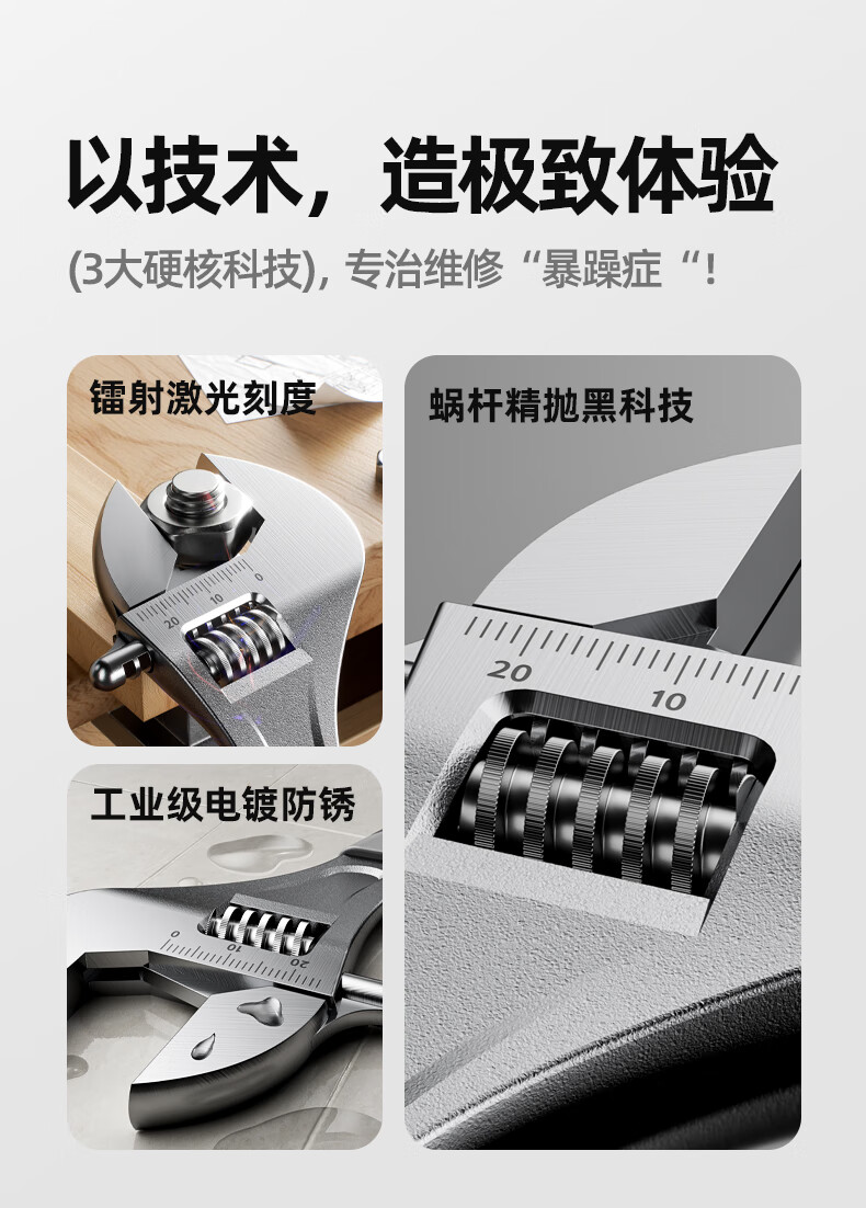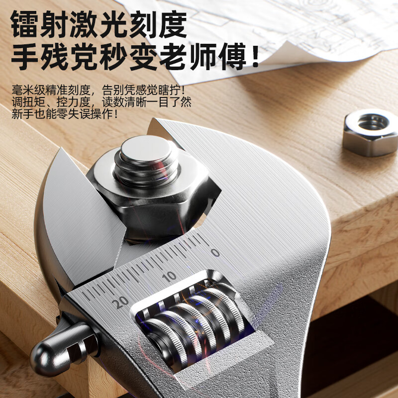 欧莱德(OULAIDE)8寸活动扳手套装工具万能活口扳手大开口多功能卫浴活络扳子光柄