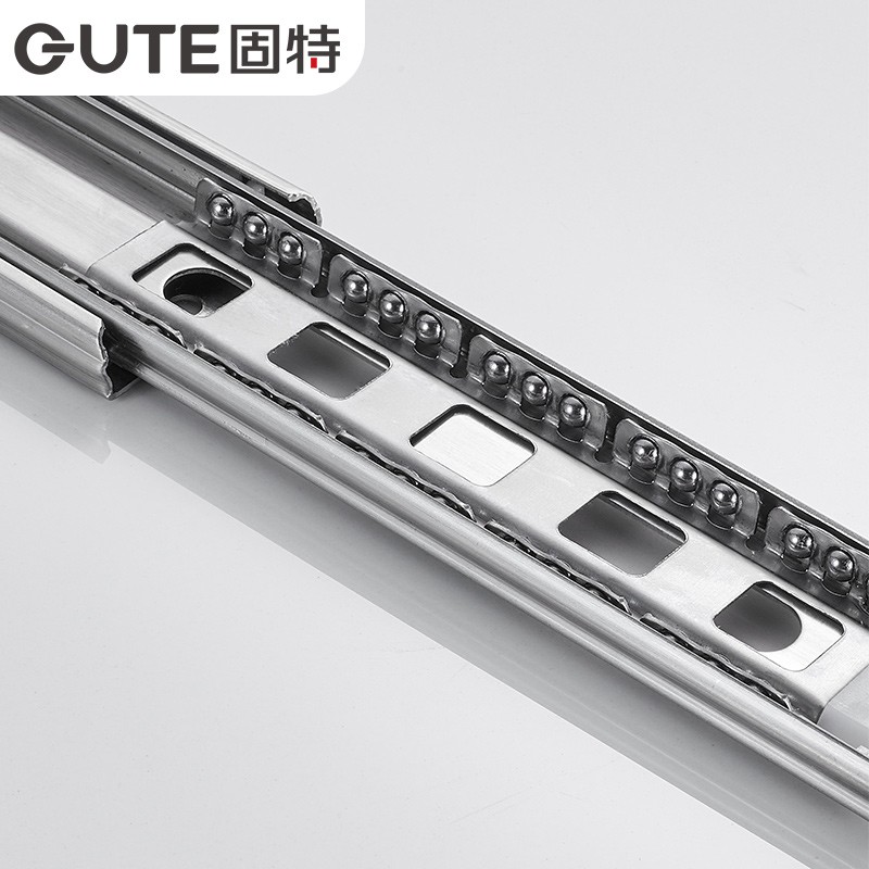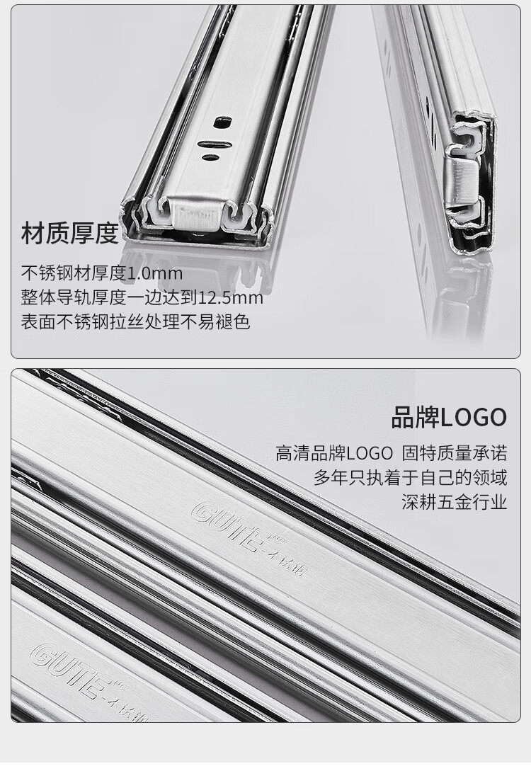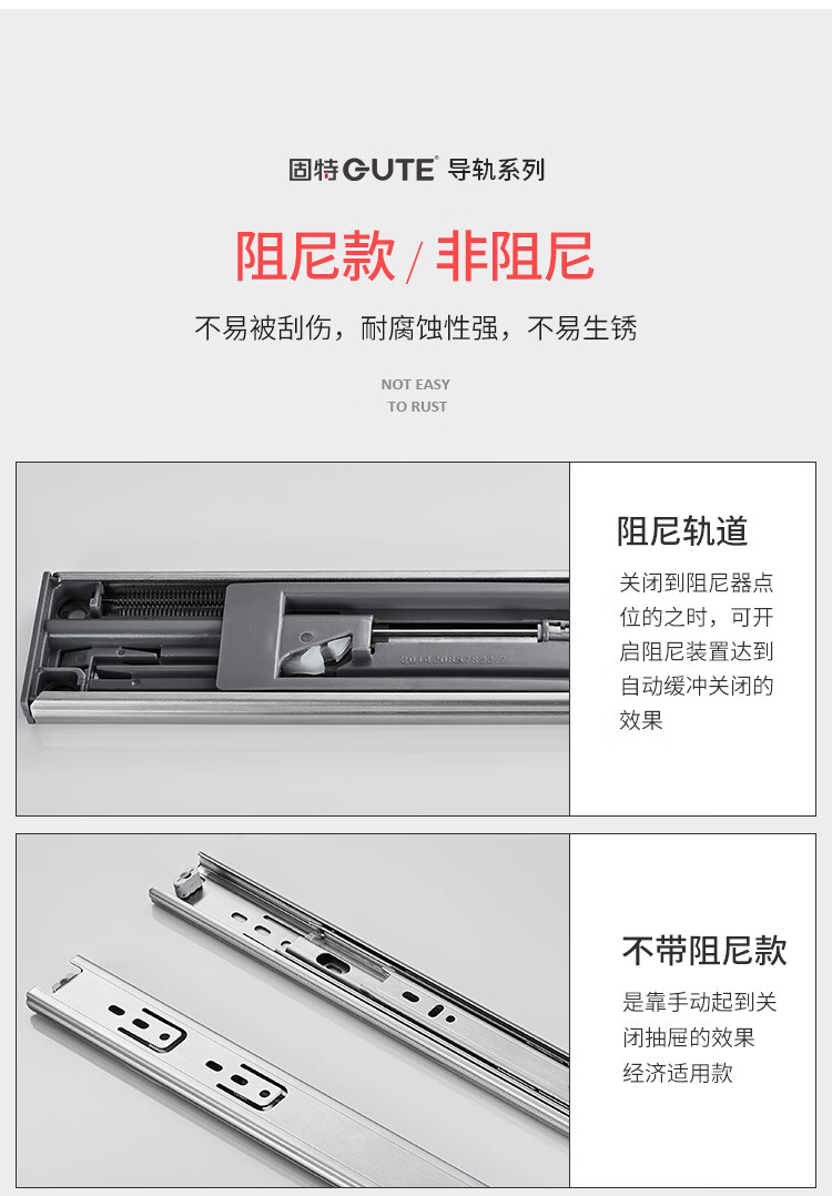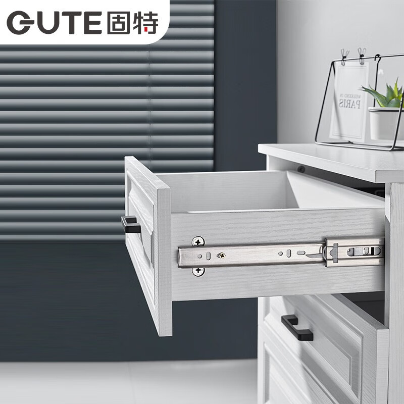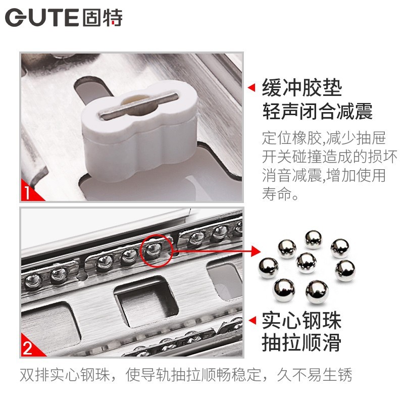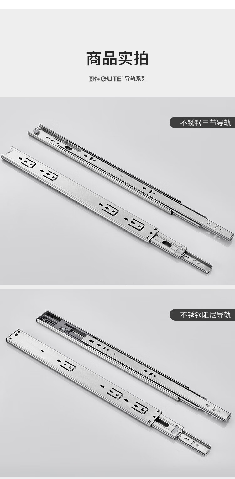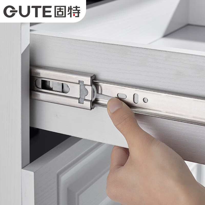 固特(GUTE)抽屉轨道不锈钢阻尼缓冲抽屉轨道三节导轨自动闭合滑轨五金滑道 不锈钢 普通款 10寸-25cm