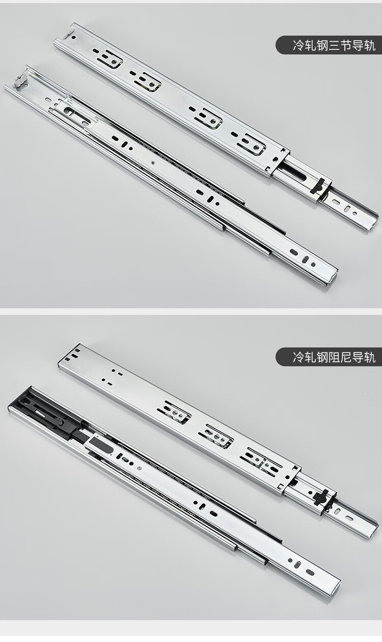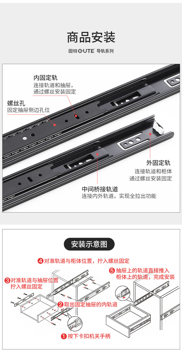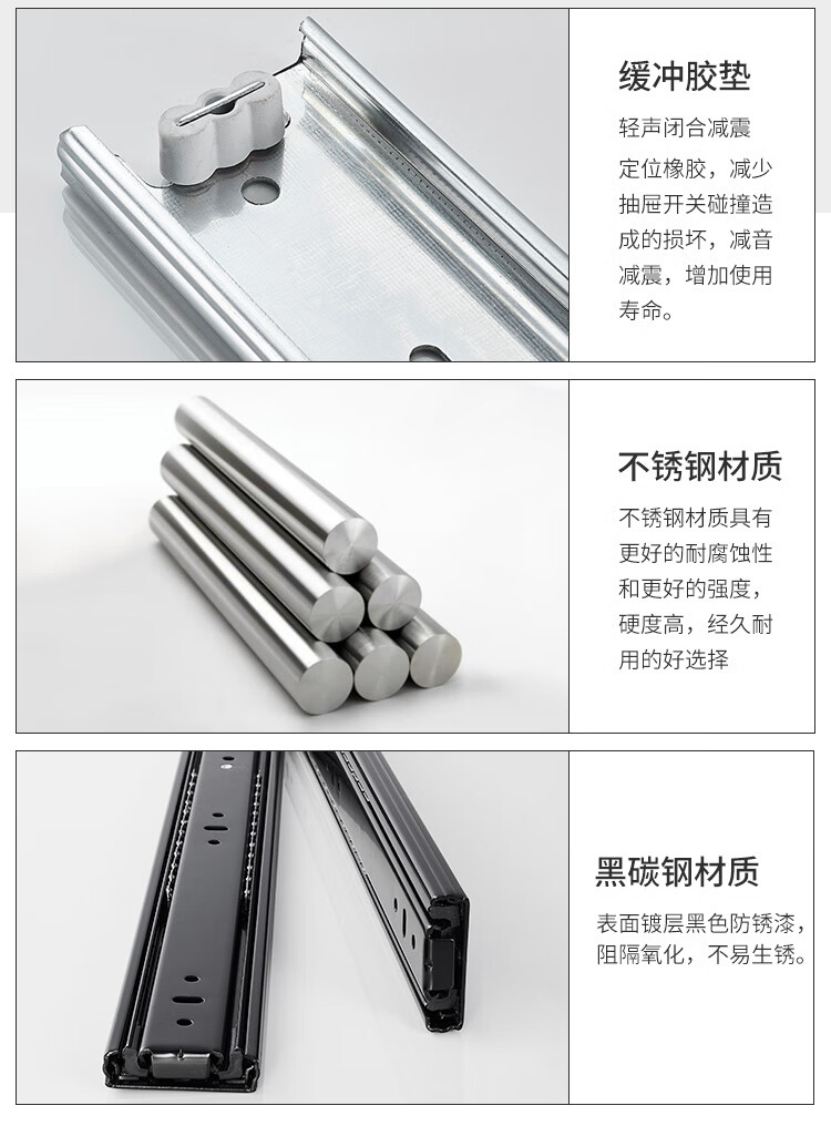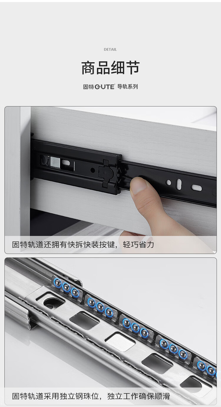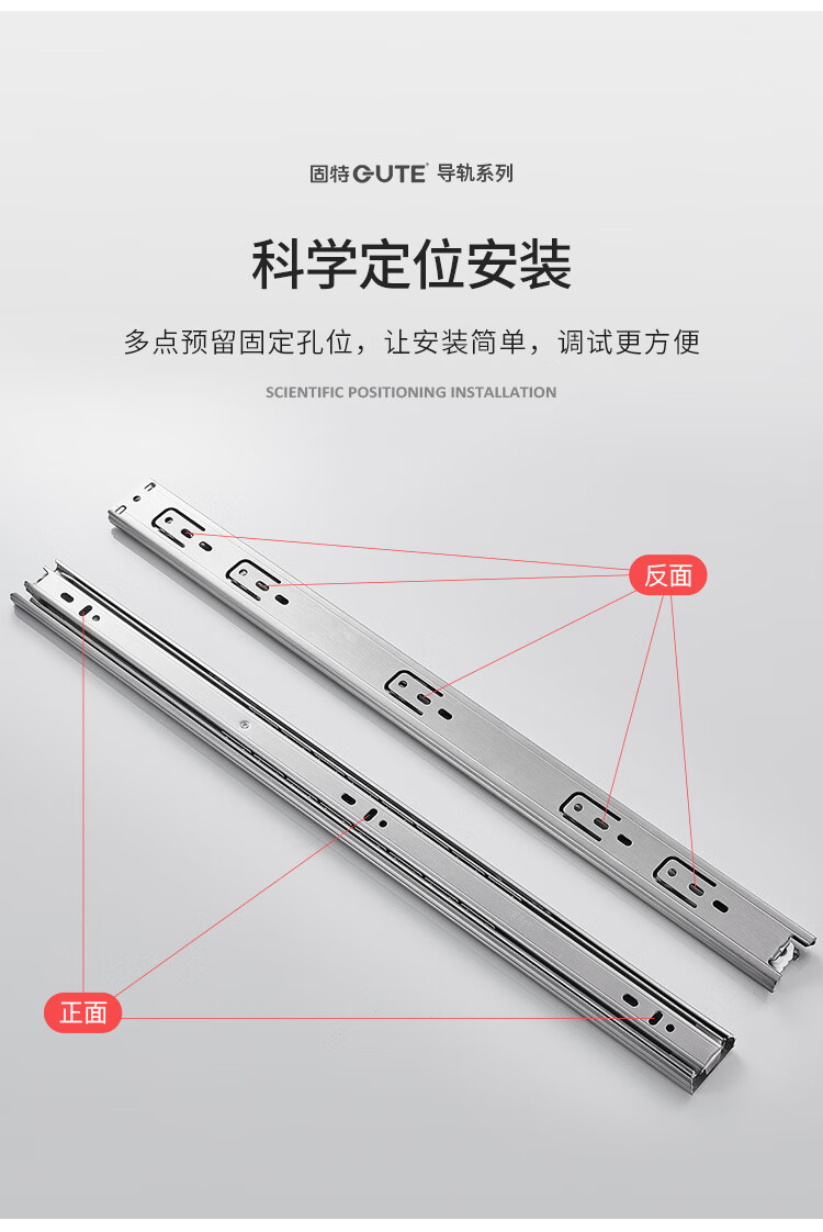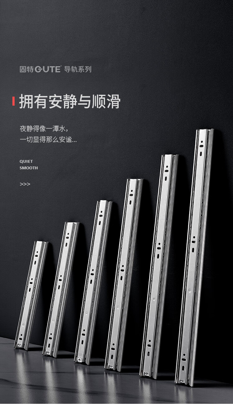 固特(GUTE)抽屉轨道不锈钢阻尼缓冲抽屉轨道三节导轨自动闭合滑轨五金滑道 不锈钢 普通款 10寸-25cm