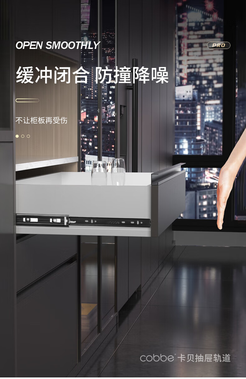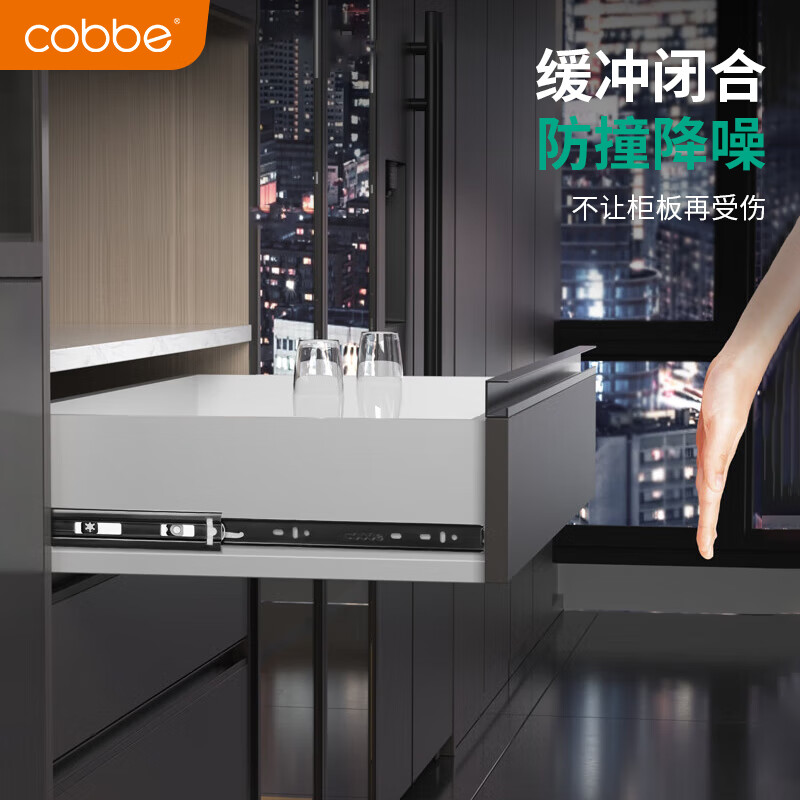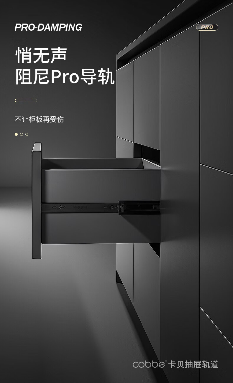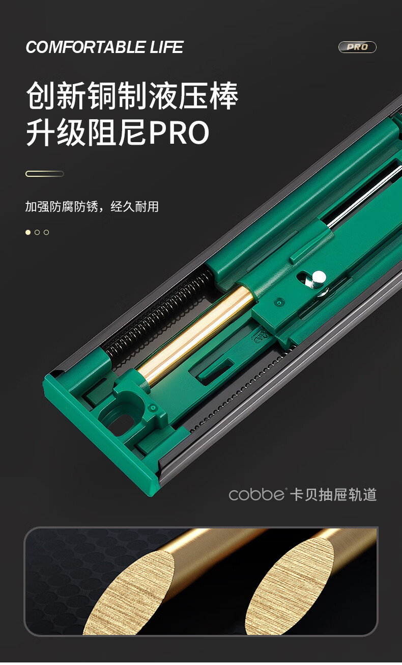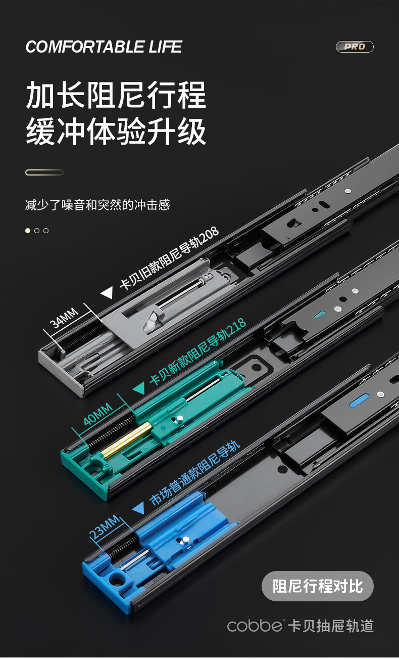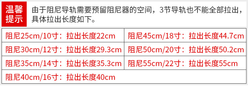 卡贝抽屉滑轨阻尼缓冲轨道滑轨三节轨道抽屉导轨五金配件滑道抽屉14寸