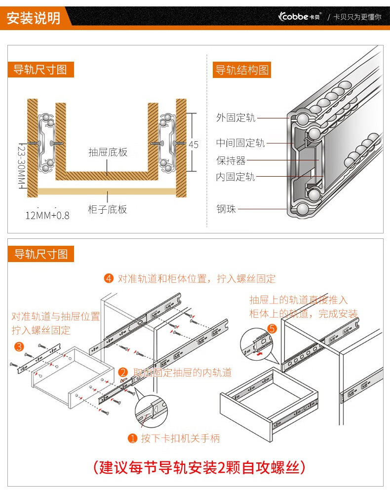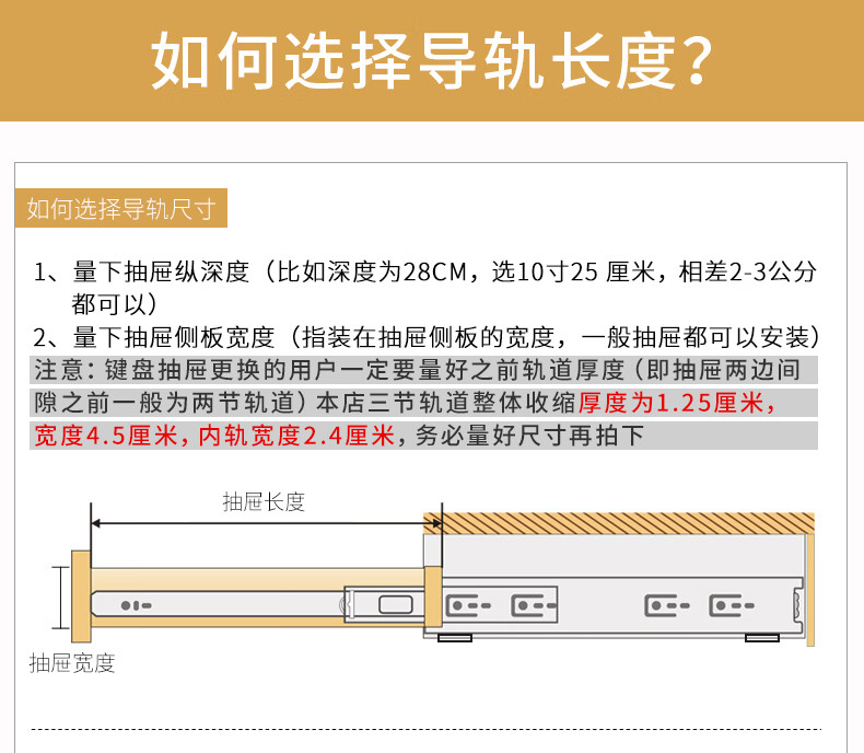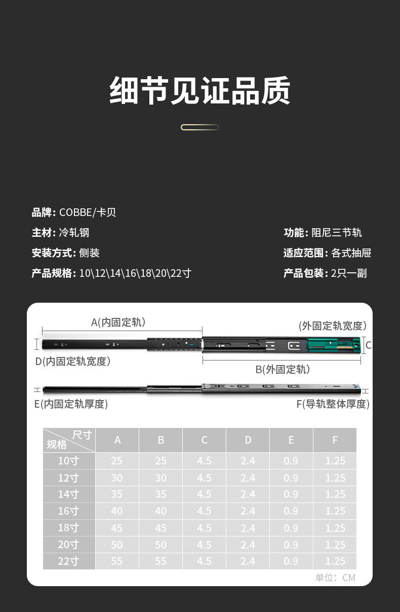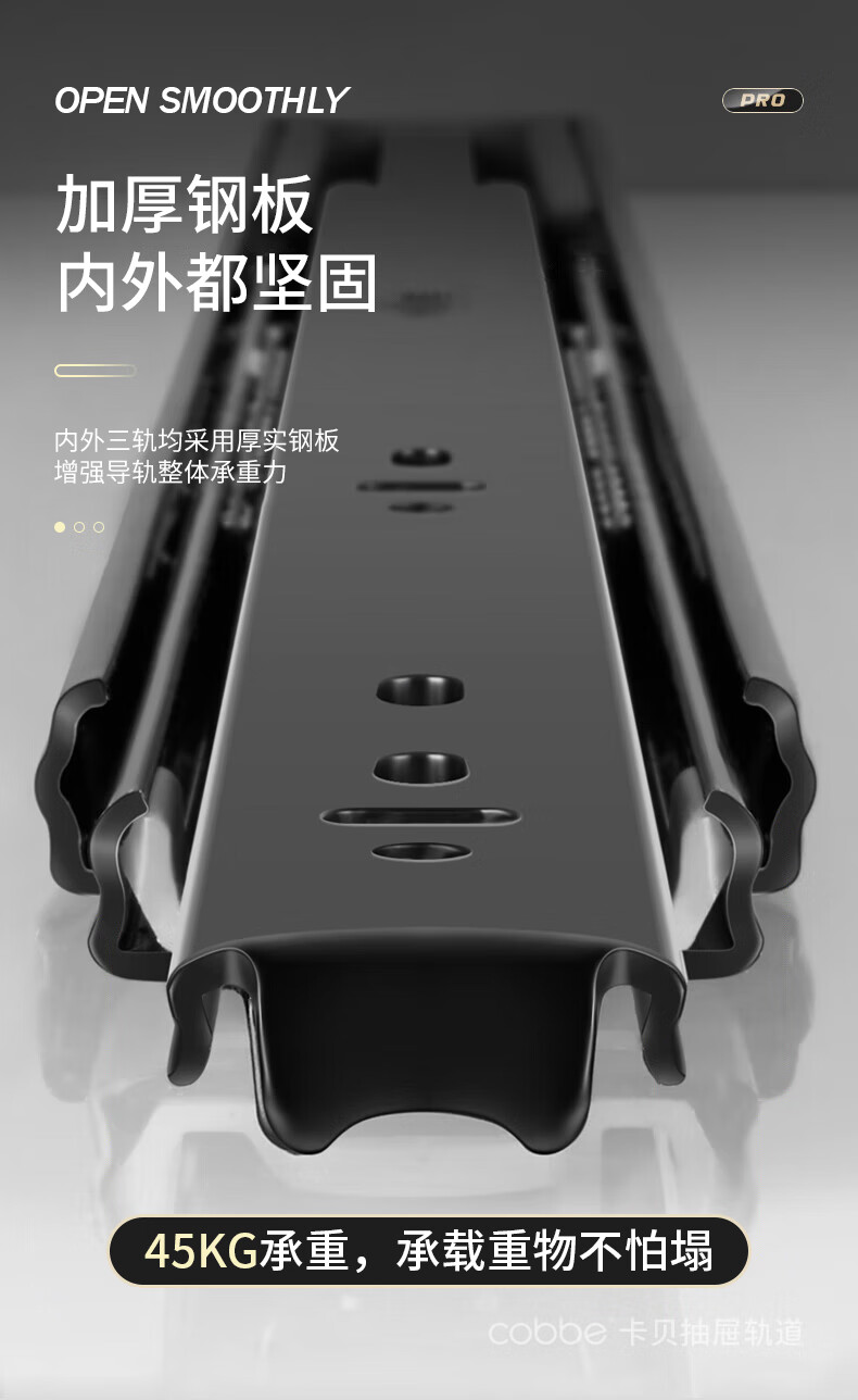 卡贝抽屉滑轨滑道轨道滑轨三节轨道抽屉导轨衣橱柜五金配件抽屉10寸