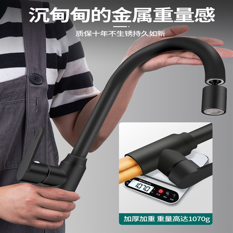 九牧王世家全铜厨房水龙头冷热洗菜盆防溅水二合一头家用水槽洗菜池万 [冷热]全铜款+80cm防爆管*质