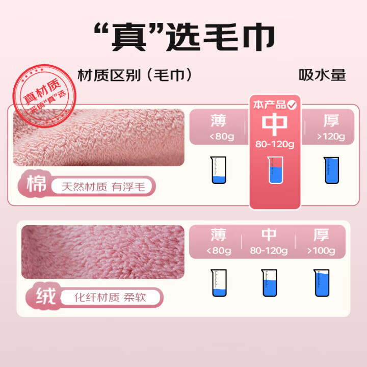 洁丽雅 毛巾单条装新疆纯棉柔软不易掉毛洗脸洗澡加厚大面巾 独立包装