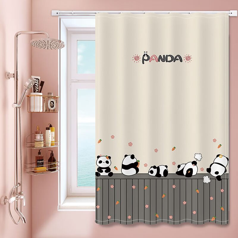 艾维乐浴室卫生间窗帘免打孔安装厕所小窗户防窥防水防走光专用遮挡帘子 好运熊熊【滑轨款】 帘宽50*100cm高