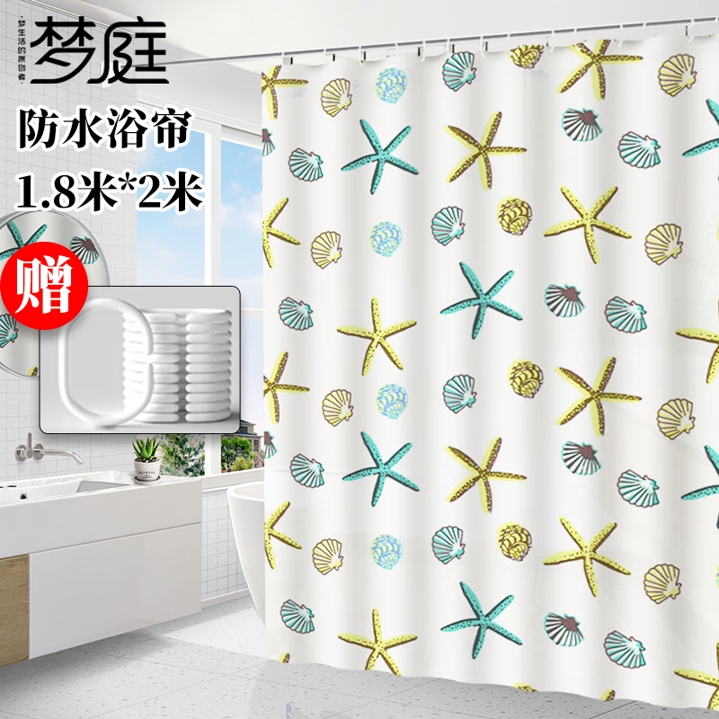 梦庭 浴帘布加厚防水浴室帘淋浴帘卫生间窗帘布隔断帘门1.8*2米